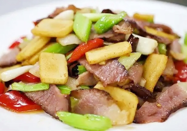 年糕,各地的做法都不一樣,湖北人做年糕也有自己的講究,把年糕切成0.3厘米厚的年糕片,油鍋燒到八成熱,把臘肉片炒一下,再加年糕片、大蒜等作料,炒出來顏色好看,臘味十足,就是自家最熟悉的那道年味兒。