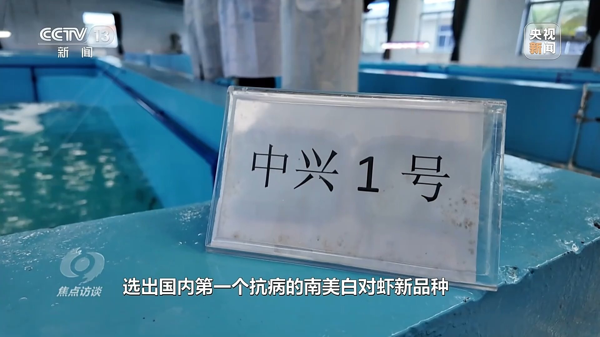 陳奕彬:“基地聯(lián)合中山大學(xué),從多個(gè)區(qū)域引進(jìn)多個(gè)種群,組成一個(gè)選育的基礎(chǔ)群體,又開(kāi)始經(jīng)過(guò)一代群體選育,加上五代的家系選育,歷經(jīng)大概八代、十年的時(shí)間,終于在2011年的時(shí)候選出國(guó)內(nèi)第一個(gè)抗病的南美白對(duì)蝦新品種:中興1號(hào)?!?/p>