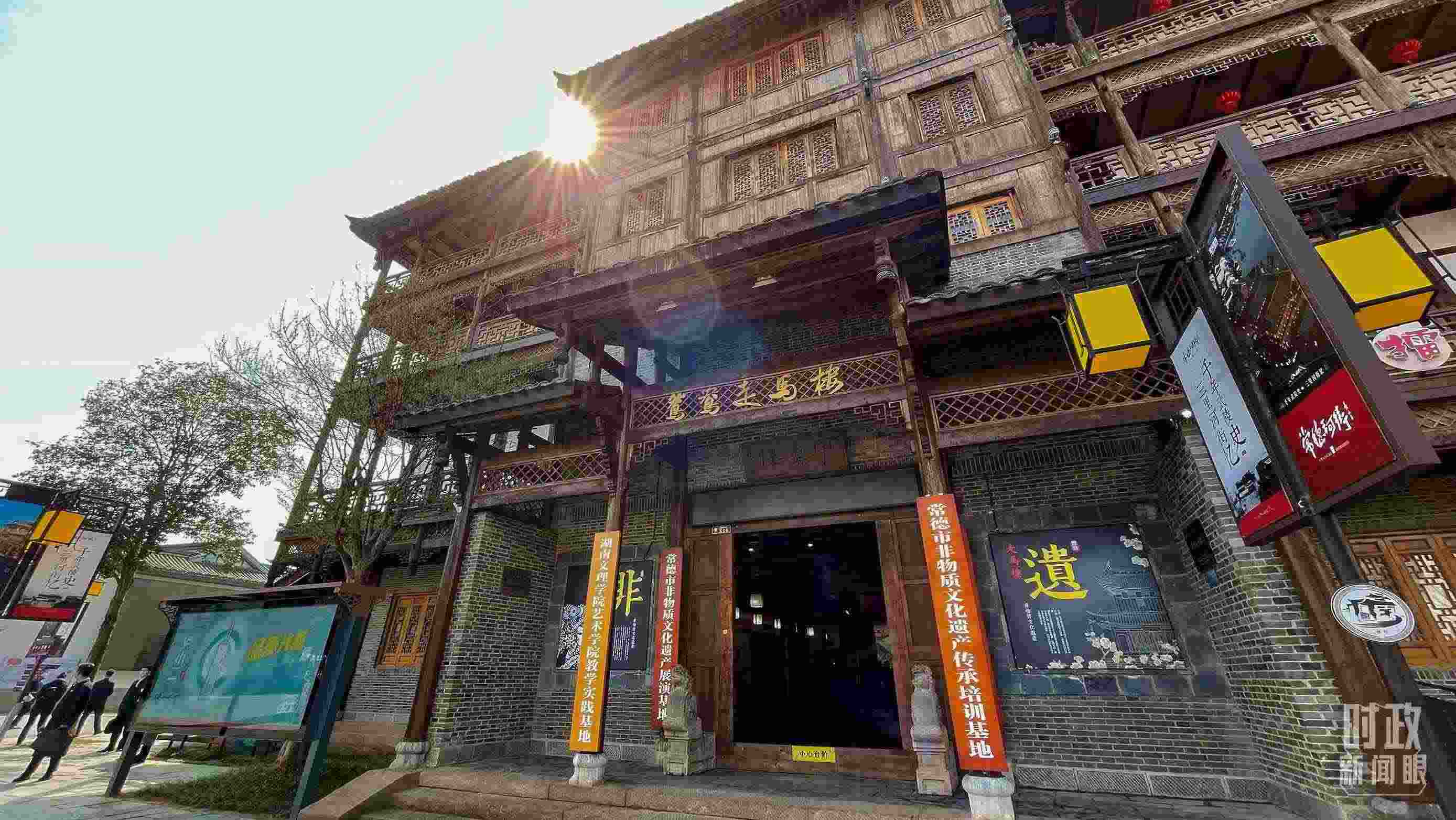 △常德河街鴛鴦走馬樓內的常德高腔、常德木雕等非遺展示。(總臺央視記者郭鴻、央廣記者潘毅拍攝)