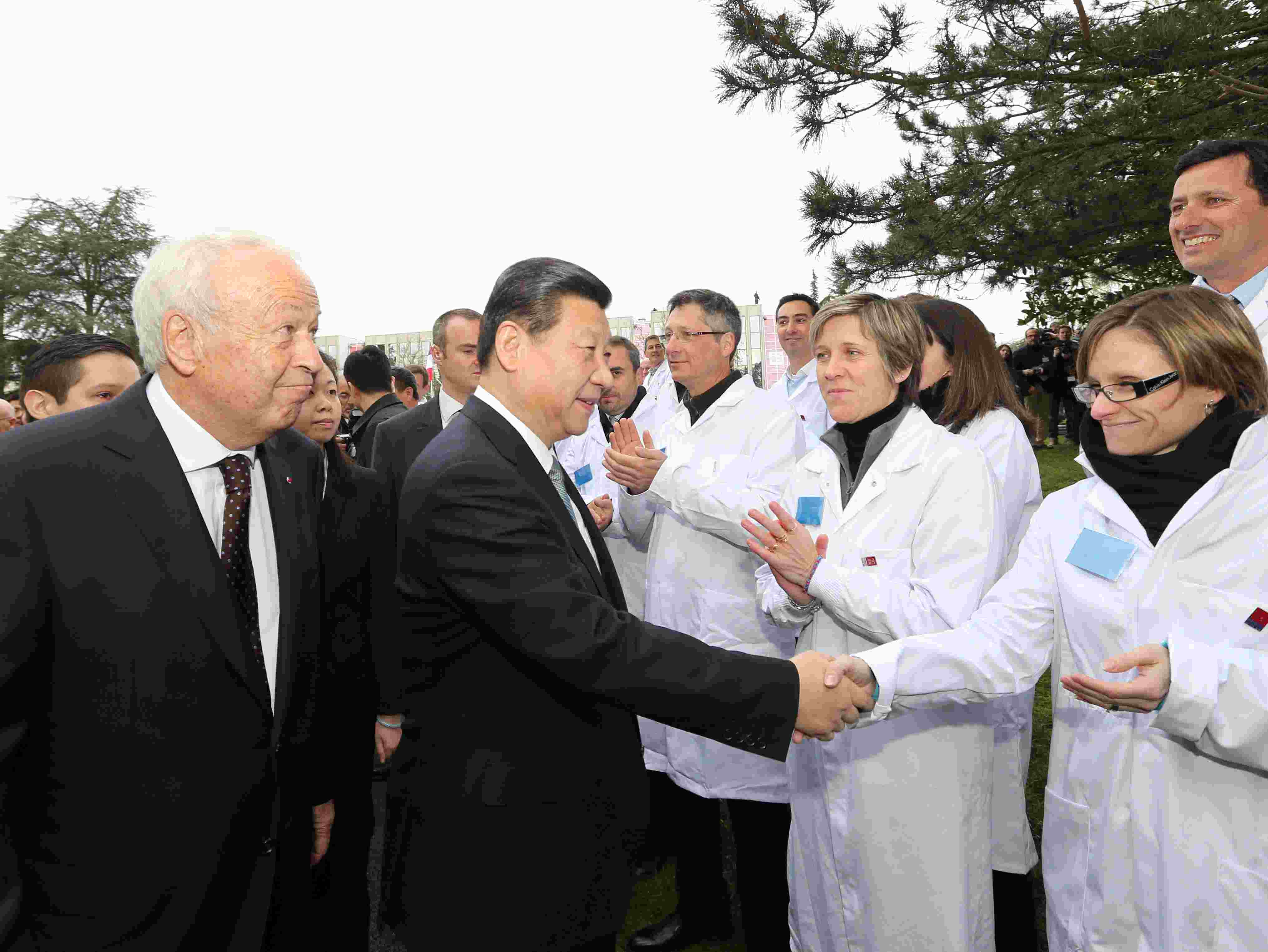 2014年3月,習(xí)近平主席訪問法國(guó)期間,專程來到梅里埃生物科研中心。阿蘭·梅里埃率家族成員以及中心員工列隊(duì)熱烈歡迎。