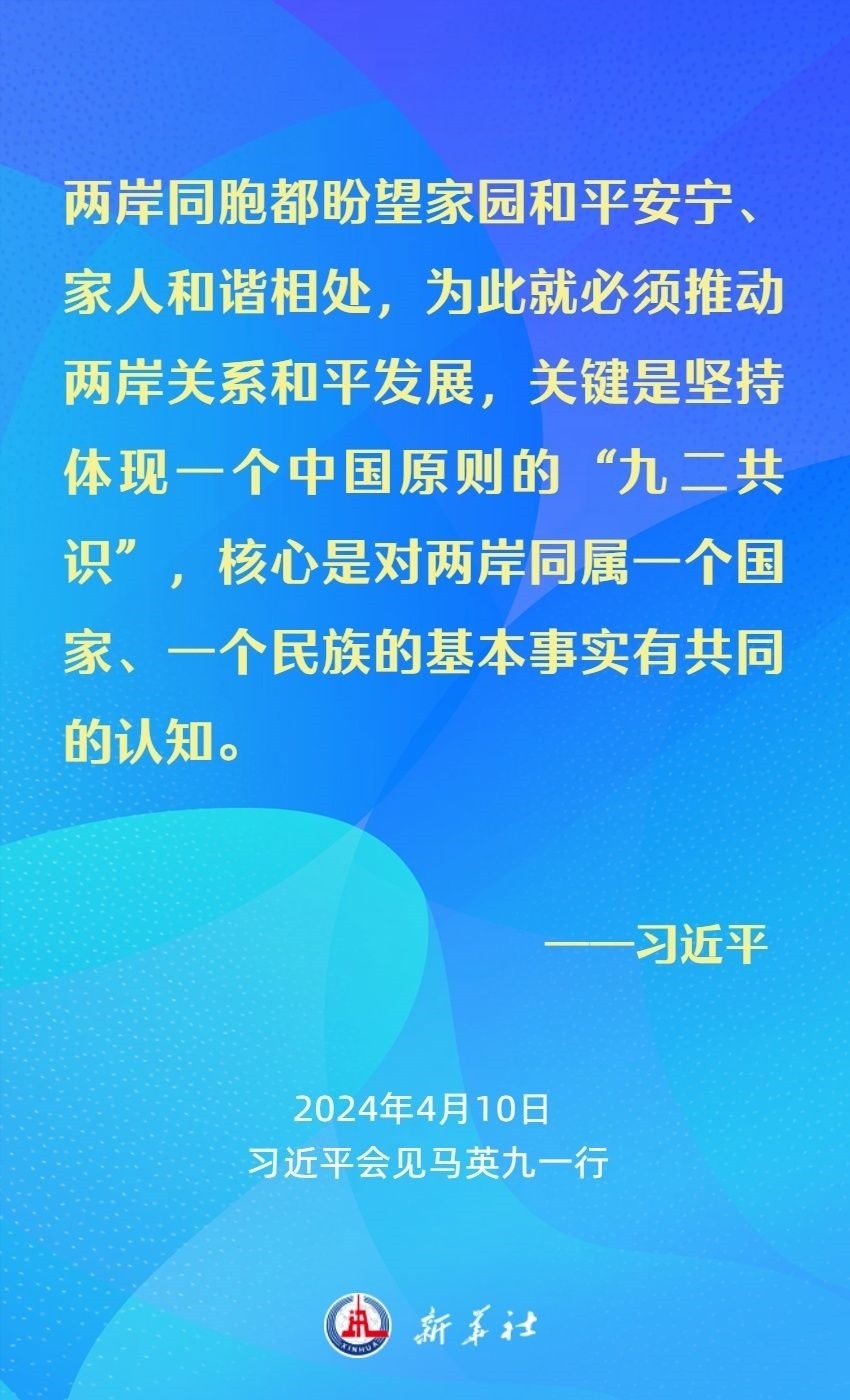 習(xí)近平強(qiáng)調(diào),兩岸同胞有共同的血脈、共同的文化、共同的歷史,更重要的是我們對(duì)民族有共同的責(zé)任、對(duì)未來有共同的期盼。我們要從中華民族整體利益和長(zhǎng)遠(yuǎn)發(fā)展來把握兩岸關(guān)系大局。