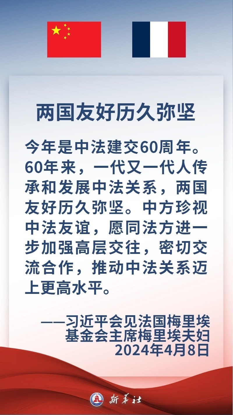今年是中法建交60周年。60年來,中法始終堅持獨立自主的戰(zhàn)略抉擇,始終致力于通過互利合作實現共同發(fā)展、通過平等交流促進文明互鑒、通過多邊協調攜手應對全球性挑戰(zhàn)。近年來,在兩國元首引領下,中法關系保持高水平發(fā)展,也為中歐關系的健康穩(wěn)定發(fā)展發(fā)揮了重要作用。