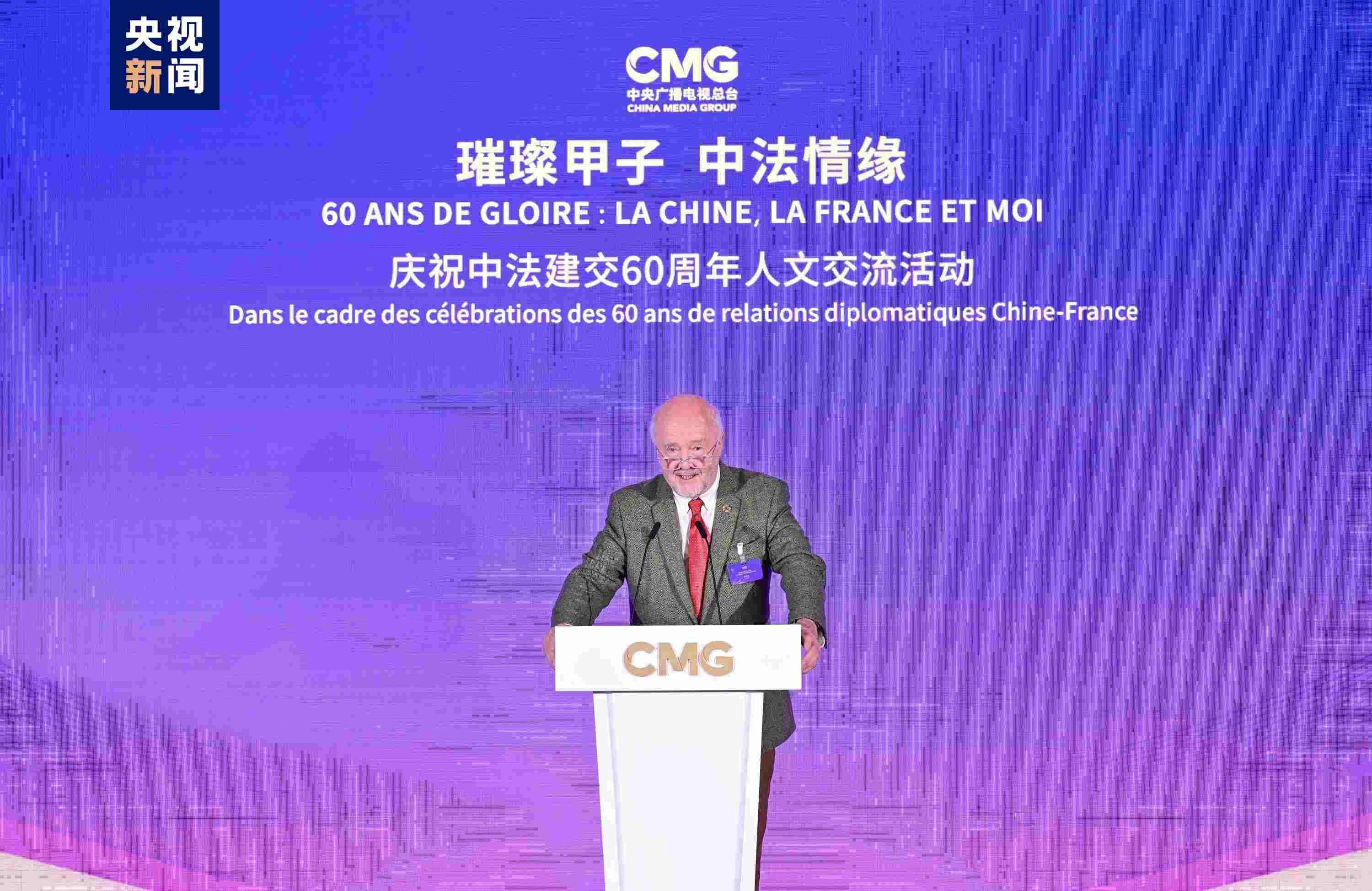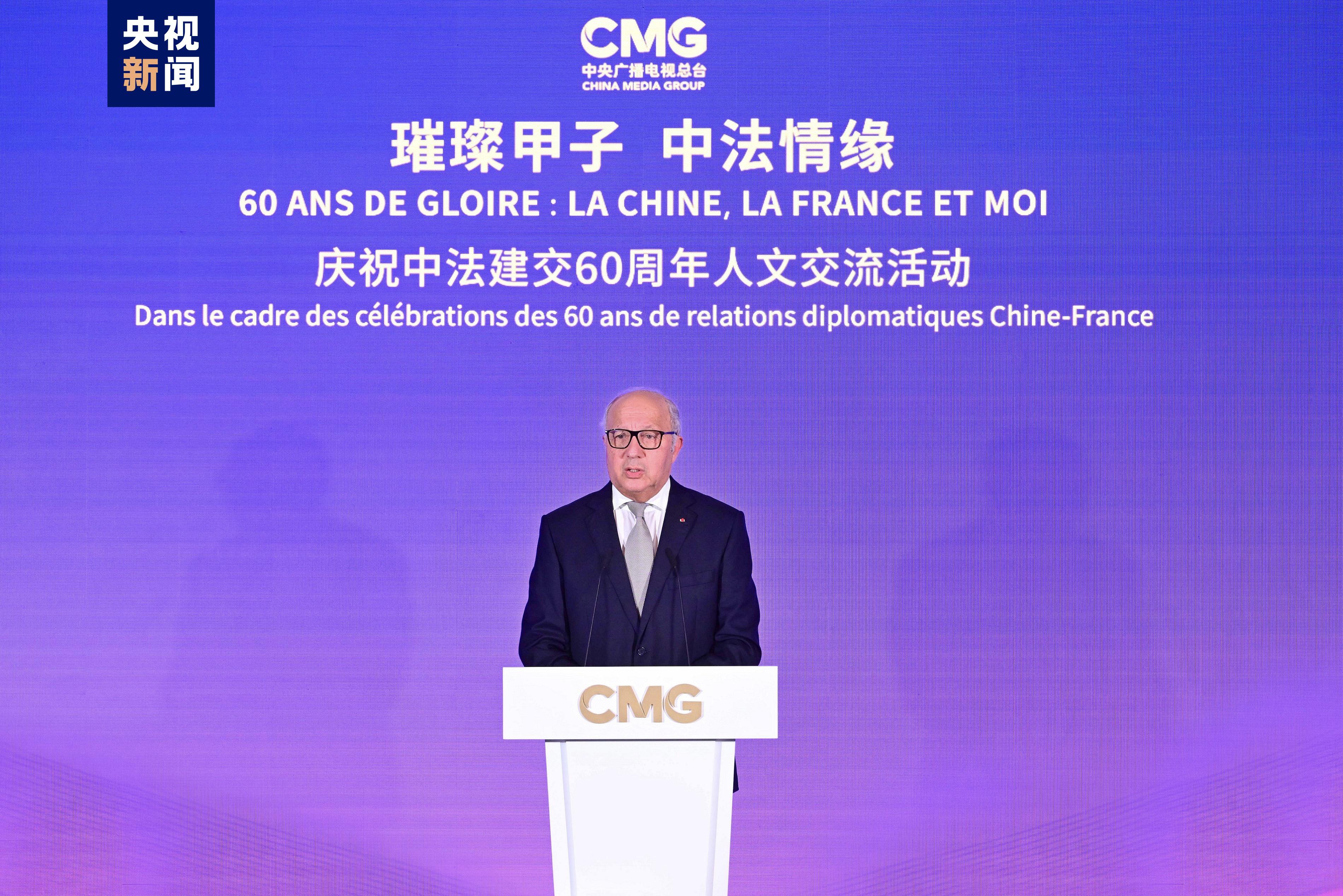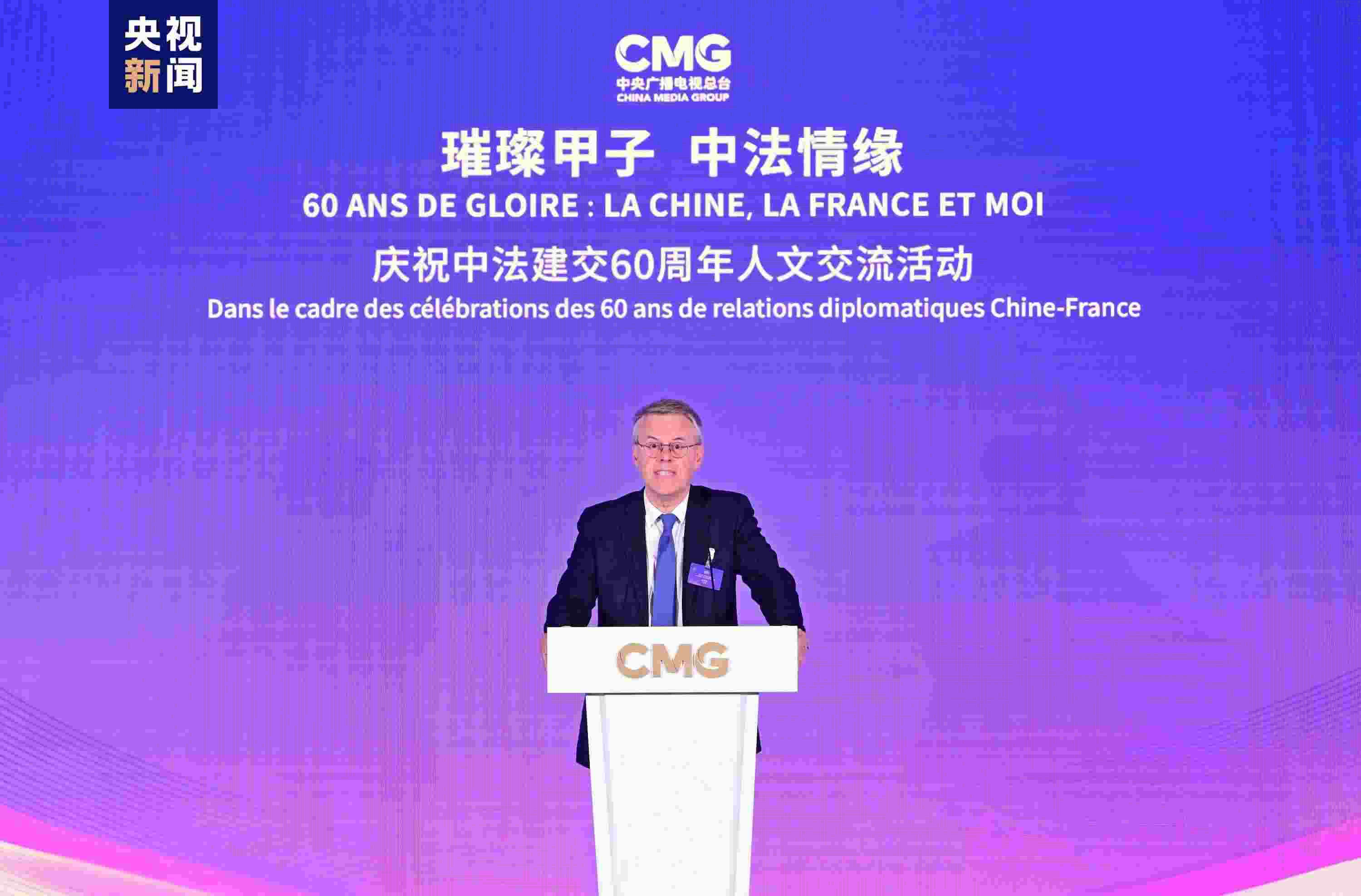 慎海雄表示,習(xí)近平主席指出,敢為人先、與時(shí)俱進(jìn)是中法關(guān)系始終走在中國同西方國家關(guān)系前列的重要法寶。法國是具有獨(dú)立見解、獨(dú)特個(gè)性的西方大國,不僅因其經(jīng)濟(jì)實(shí)力,還因國家品質(zhì)和人民氣節(jié),贏得了中國人民的尊重。建交60年來,中法兩國的友誼之船在兩國元首把舵定向下行穩(wěn)致遠(yuǎn)。人文交流貴在思想、文化的交匯、碰撞和吸引。中央廣播電視總臺(tái)精品節(jié)目《平“語”近人——習(xí)近平喜歡的典故》(國際版)在法國播出,為大家讀懂習(xí)主席的思想、中國文化、中國智慧打開一扇思想之窗,邀大家共賞璀璨輝煌的中華文明和新時(shí)代中國的獨(dú)特魅力。站在中法建交一甲子的歷史節(jié)點(diǎn),總臺(tái)愿與法國朋友們并肩同行,為打造更加牢固、更富活力的中法全面戰(zhàn)略伙伴關(guān)系、推動(dòng)構(gòu)建人類命運(yùn)共同體貢獻(xiàn)智慧和力量。