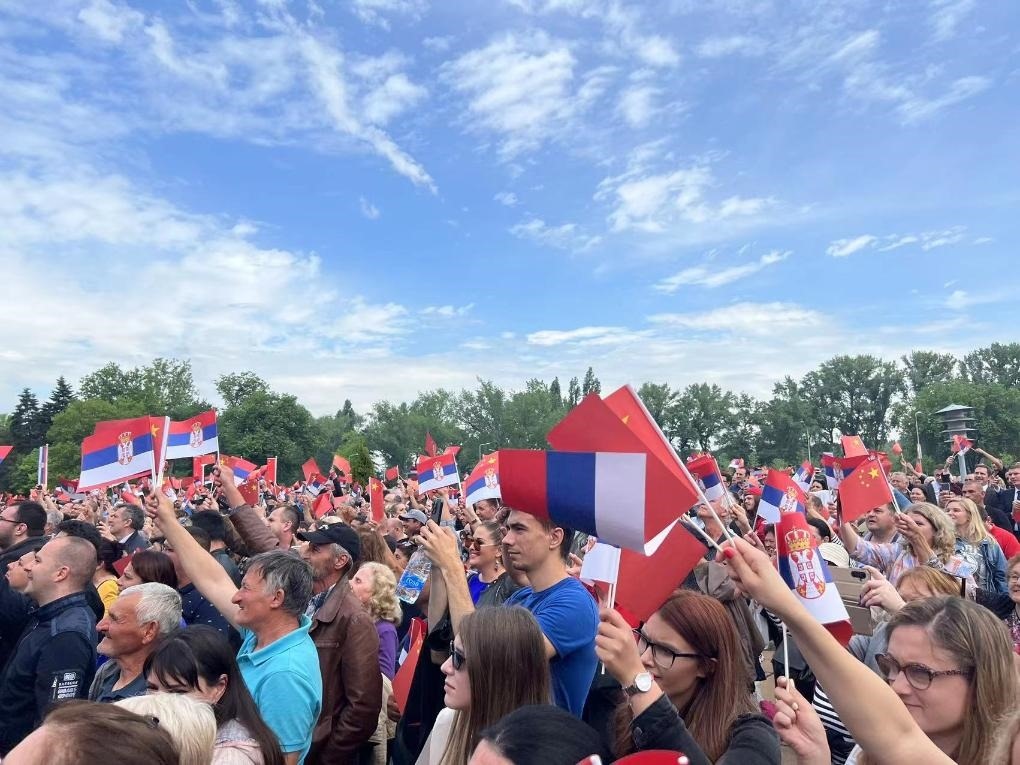 大廈廣場(chǎng)上,一萬(wàn)五千名塞爾維亞民眾揮舞中塞兩國(guó)國(guó)旗,對(duì)習(xí)近平表示最熱烈的歡迎。