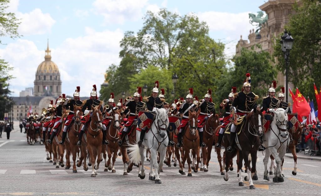 五月的巴黎,風(fēng)和景明。塞納河畔,榮軍院金色穹頂熠熠生輝,五星紅旗和藍(lán)白紅三色旗迎風(fēng)飄揚(yáng)。