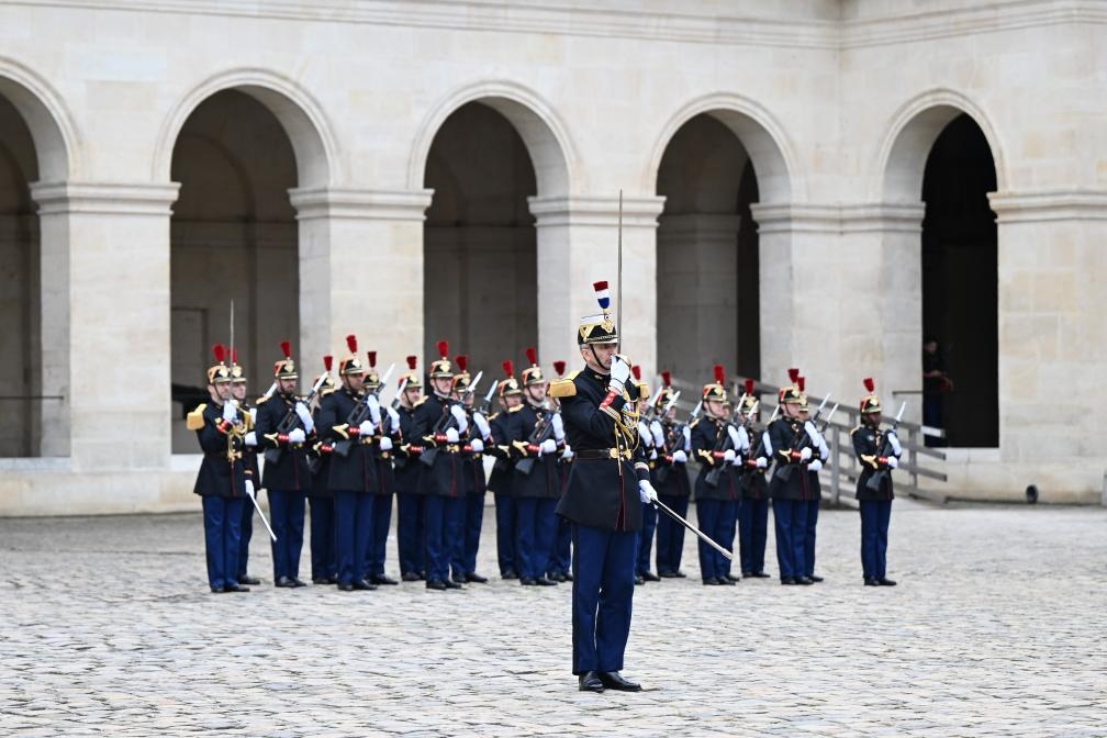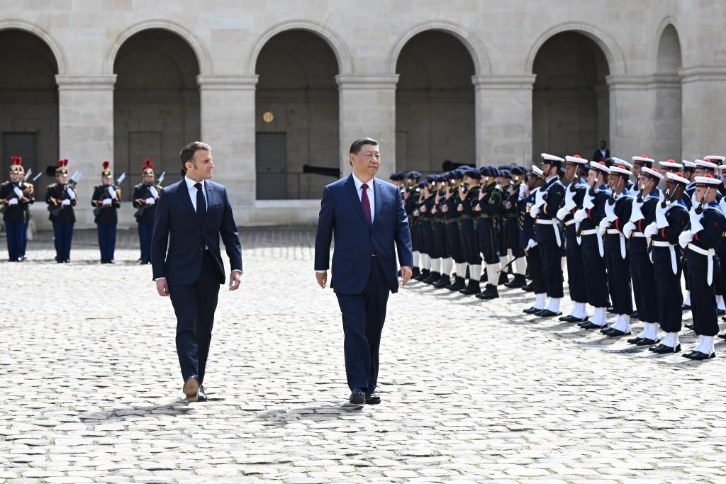 當(dāng)天下午,習(xí)近平在巴黎出席馬克龍舉行的隆重盛大歡迎儀式。兩國(guó)元首檢閱法蘭西共和國(guó)衛(wèi)隊(duì)和陸??杖妰x仗隊(duì),并觀看分列式。