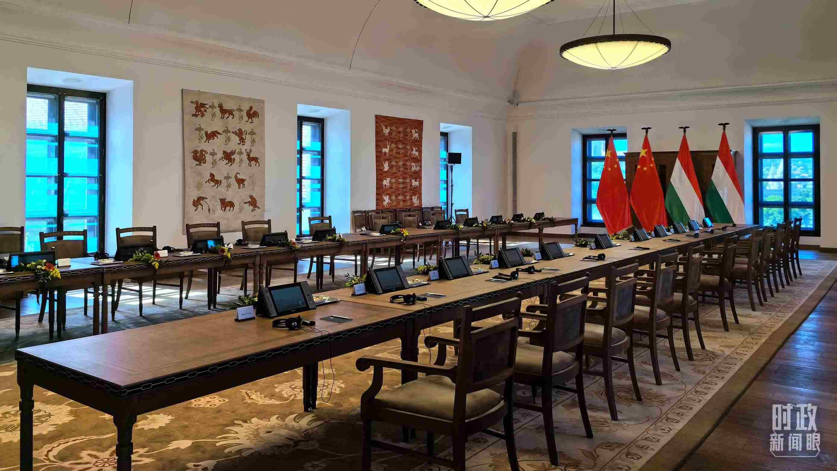 △5月9日,習(xí)主席同匈牙利總理歐爾班在這里舉行會(huì)談。這是會(huì)談開(kāi)始前的現(xiàn)場(chǎng)。(總臺(tái)央視記者陸泓宇拍攝)