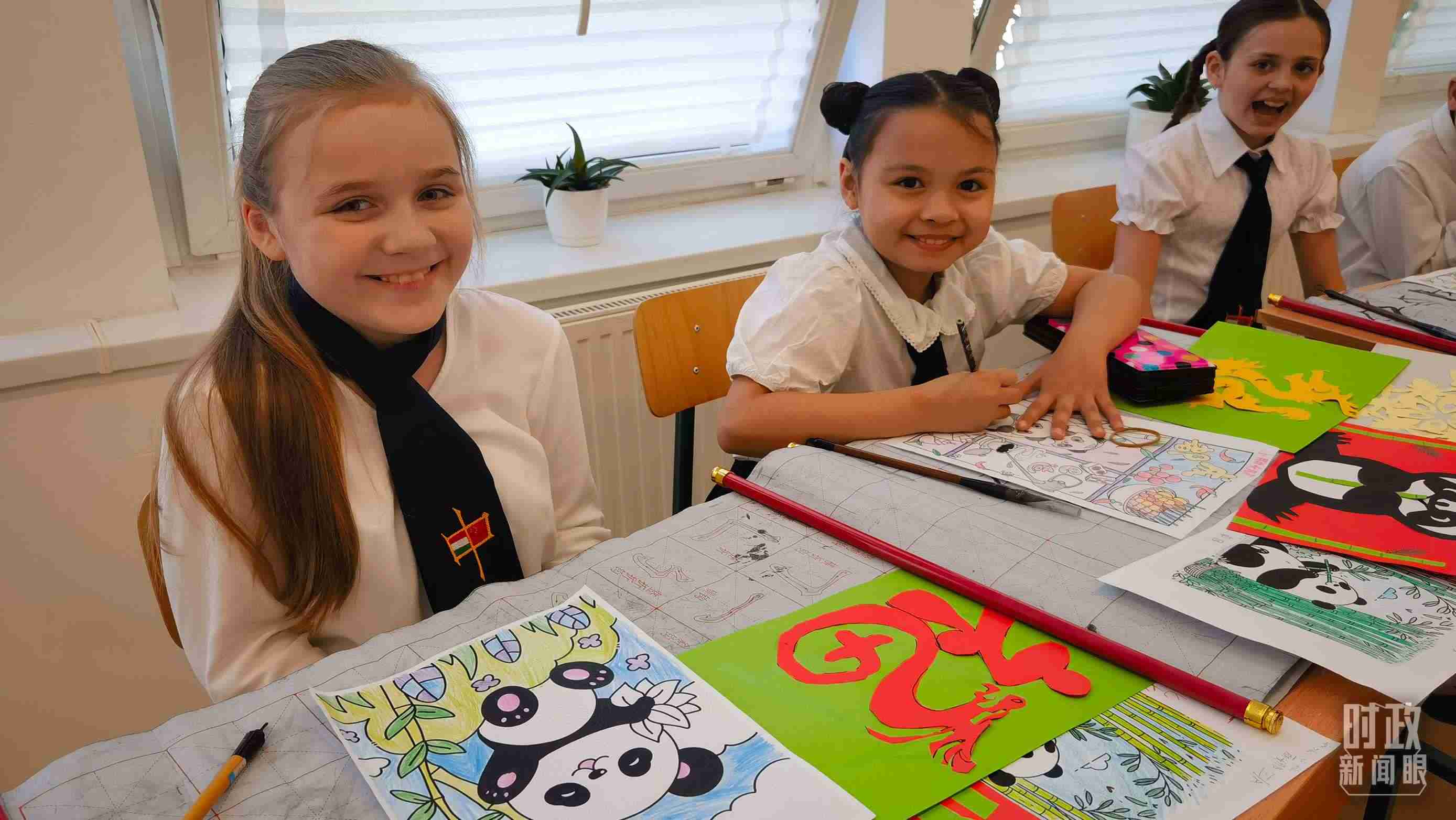 △匈中雙語學(xué)校中國傳統(tǒng)文化課堂上的孩子們。(總臺央視記者凌楓拍攝)
