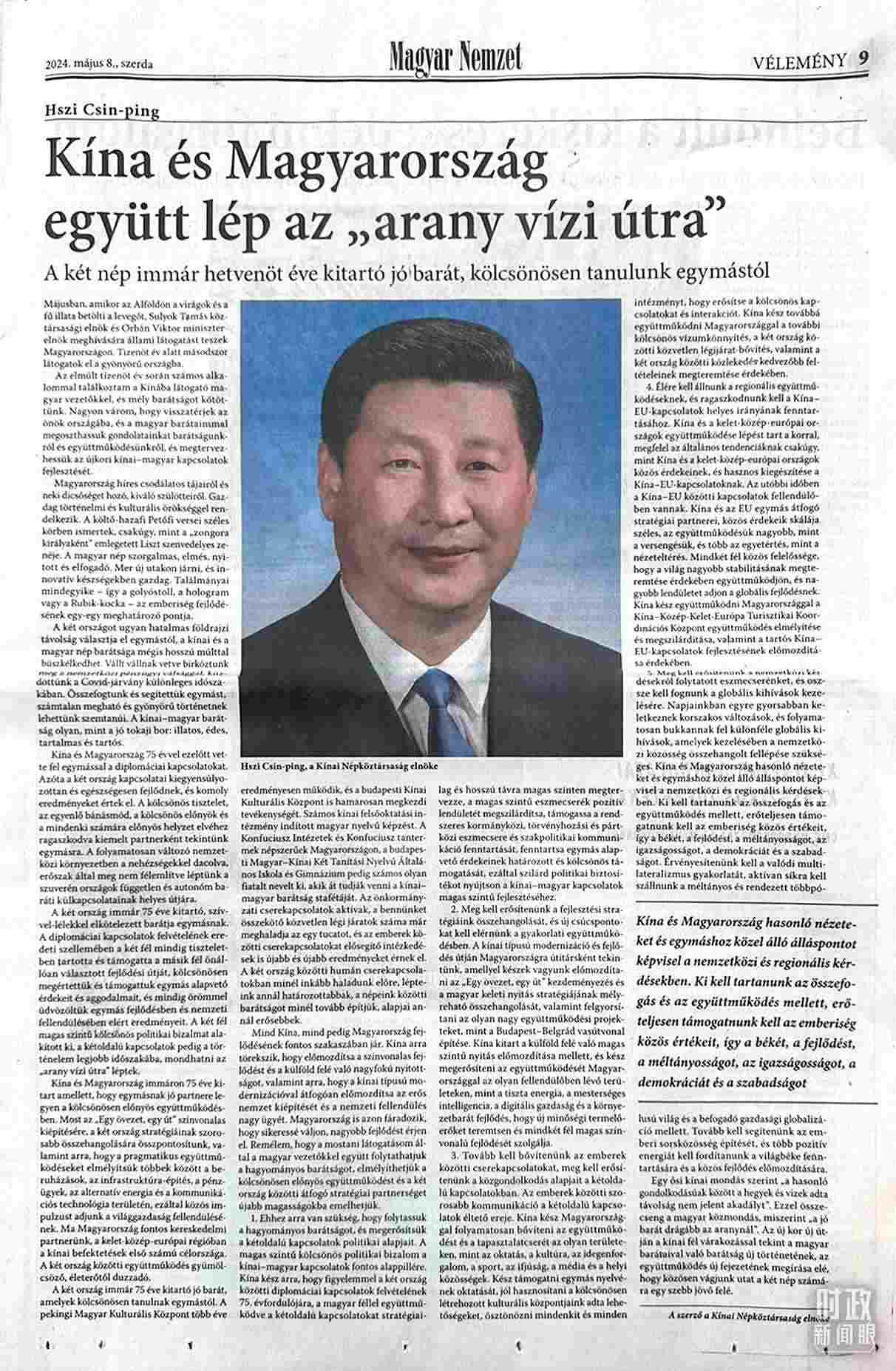△習(xí)主席在匈牙利《匈牙利民族報》發(fā)表的署名文章。(總臺記者沃龍拍攝)