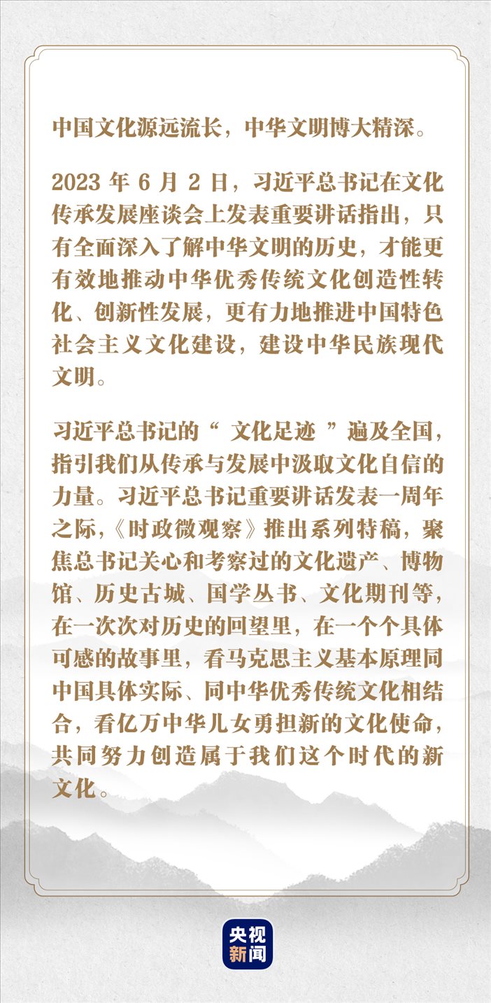 新時代賦予我們新的文化使命,讓中華文明“亙古亙今”、讓中華民族“日新又新”,一幅“建設中華民族現(xiàn)代文明”的美好畫卷正在神州大地徐徐繪就。