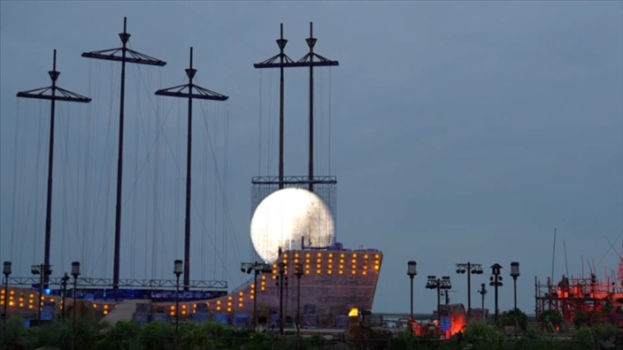 夜幕降臨,北部灣畔,一座“漁港”華燈初上,點(diǎn)亮了這里的雕欄玉砌。傍晚六點(diǎn),西班牙姑娘克勞迪婭換上了頗具西域風(fēng)情的服裝,開(kāi)始了她今晚的演出??藙诘蠇I參演的戲劇,講述了兩千多年前廣西合浦這座海上絲綢之路早期始發(fā)港的故事。
