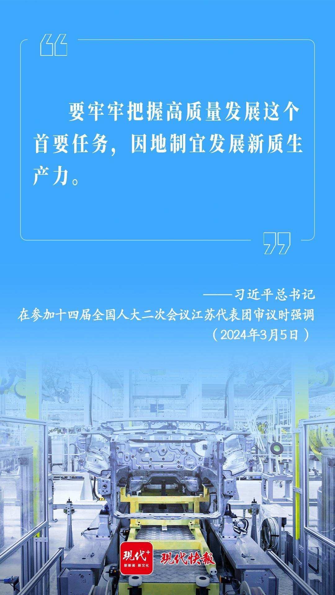 2024年3月5日,習(xí)近平總書記在參加十四屆全國人大二次會議江蘇代表團審議時強調(diào):“要牢牢把握高質(zhì)量發(fā)展這個首要任務(wù),因地制宜發(fā)展新質(zhì)生產(chǎn)力。”