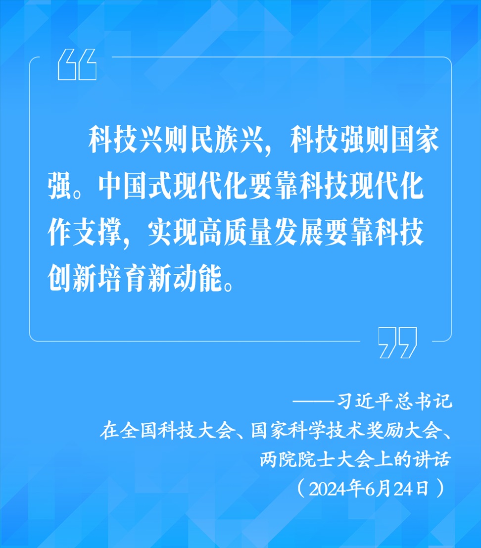 6月24日,全國科技大會、國家科學(xué)技術(shù)獎勵大會、兩院院士大會在北京召開,習(xí)近平總書記為國家最高科學(xué)技術(shù)獎獲得者等頒獎并發(fā)表重要講話。總書記強調(diào),科技興則民族興,科技強則國家強。中國式現(xiàn)代化要靠科技現(xiàn)代化作支撐,實現(xiàn)高質(zhì)量發(fā)展要靠科技創(chuàng)新培育新動能。