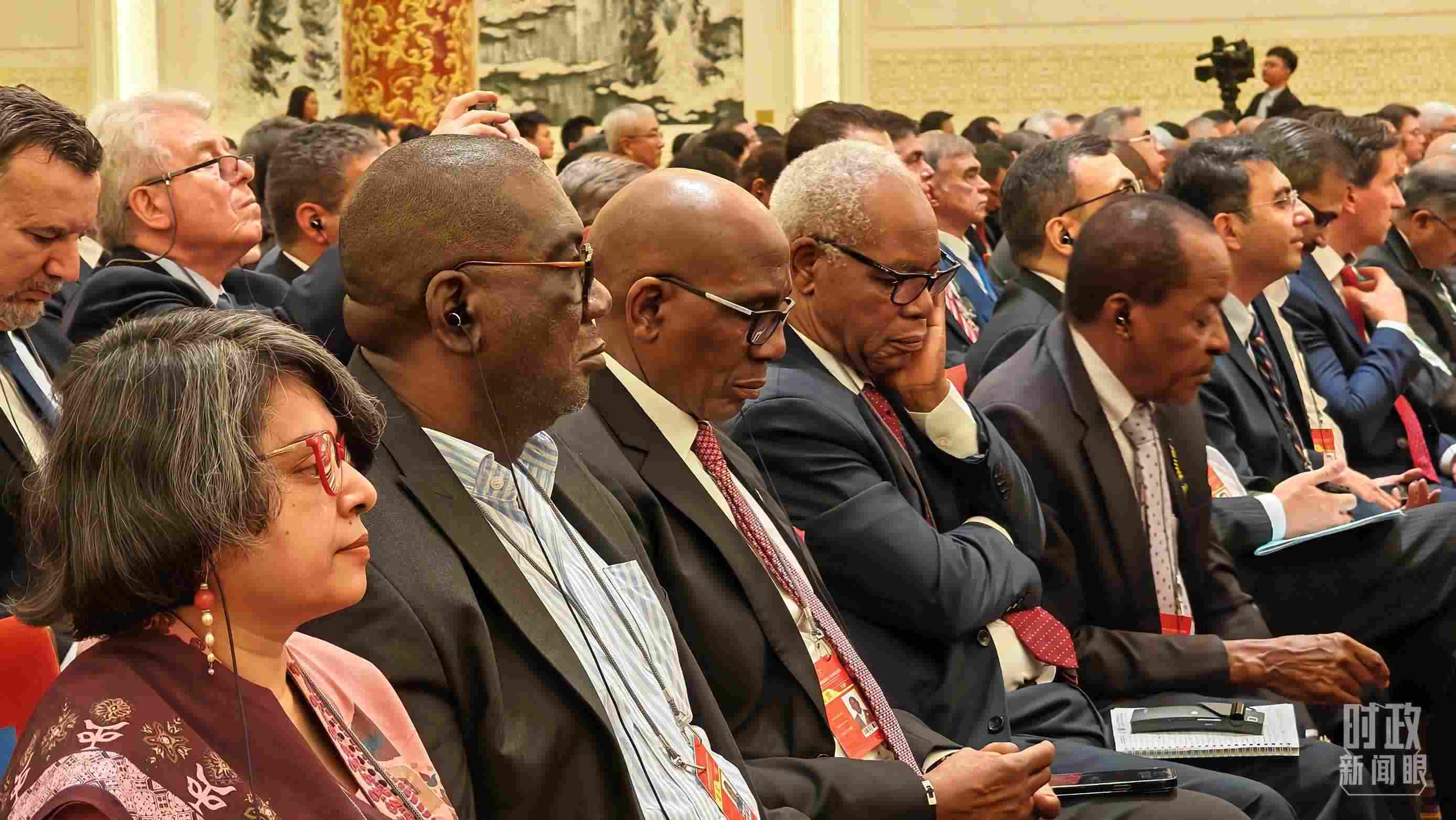 當(dāng)天,600余人共聚人民大會堂金色大廳,其中包括來自越南、緬甸、南非、埃塞俄比亞、巴西、法國等國的政要,同時還有國際和地區(qū)組織代表、來自100多個國家的駐華使節(jié)、中外專家學(xué)者、友好人士、媒體和工商界代表等。