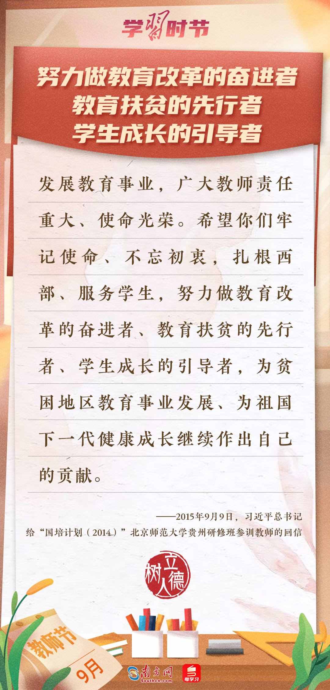 “百年大計,教育為本。教育大計,教師為本。”黨的十八大以來,習近平總書記多次以書信形式向教師群體和教育工作者表達囑托與期望,諄諄話語,催人奮進。在第四十個教師節(jié)到來之際,讓我們一起重溫總書記的諄諄寄語!