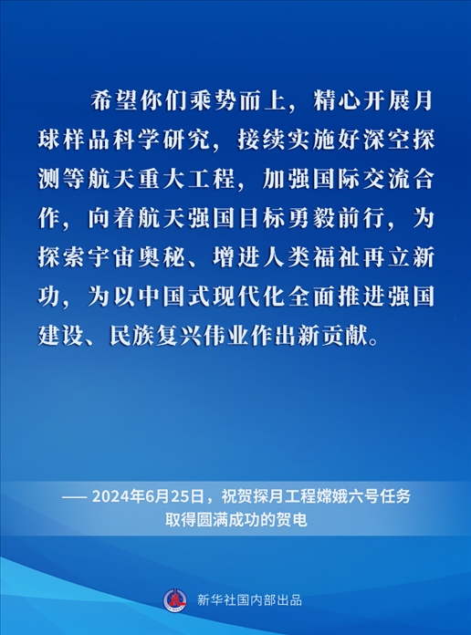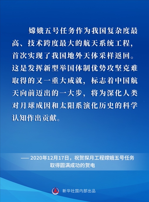 黨的十八大以來,在以習近平同志為核心的黨中央關心引領下,中國探月工程取得舉世矚目的重大成就,為探索宇宙奧秘、增進人類福祉屢立新功,為以中國式現(xiàn)代化全面推進強國建設、民族復興偉業(yè)作出卓越貢獻。