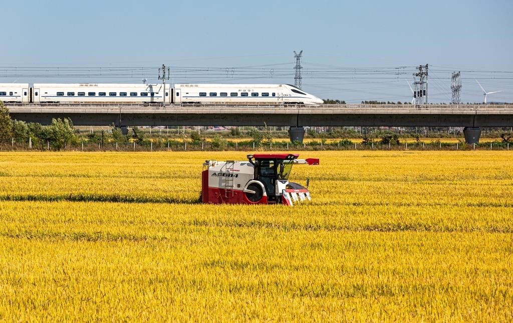 △2024年9月18日,黑龍江省哈爾濱市阿城區(qū)料甸街道三家子屯,農(nóng)民正在收割水稻。