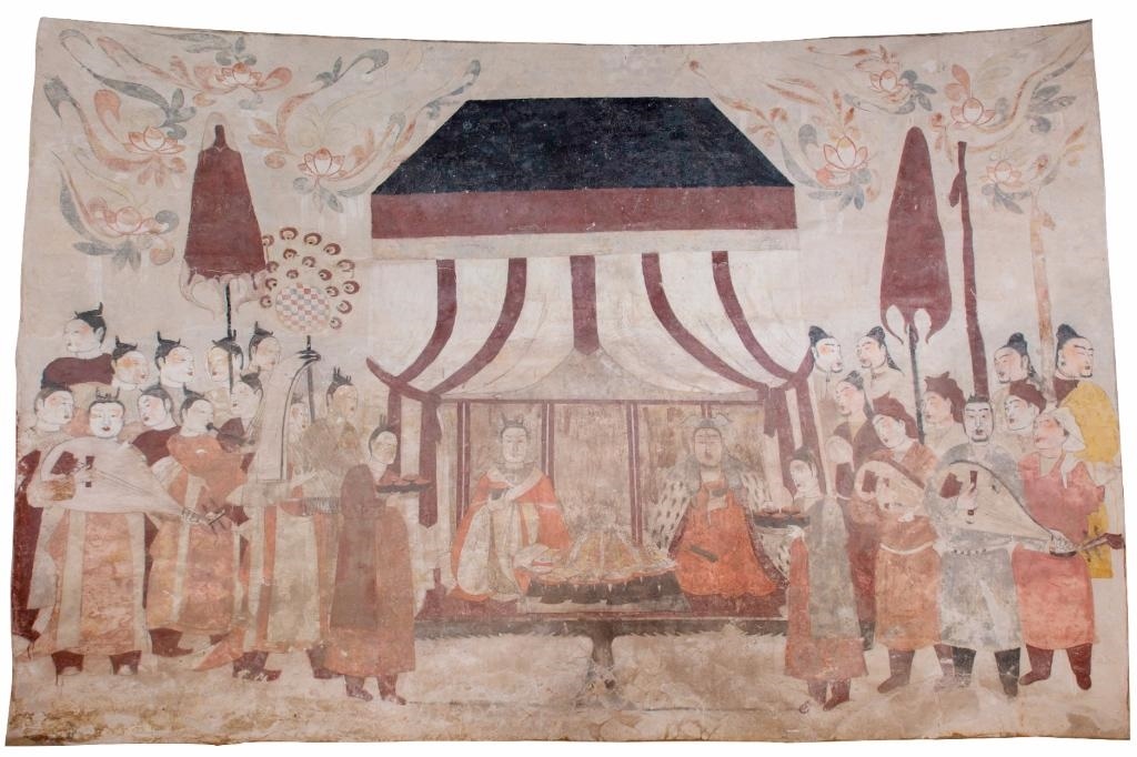 這是徐顯秀墓室北壁墓主夫婦宴飲圖。(太原北齊壁畫(huà)博物館資料圖片)