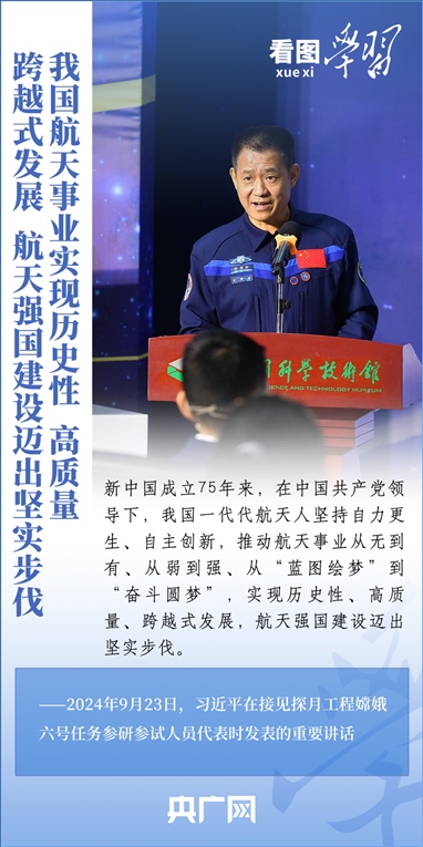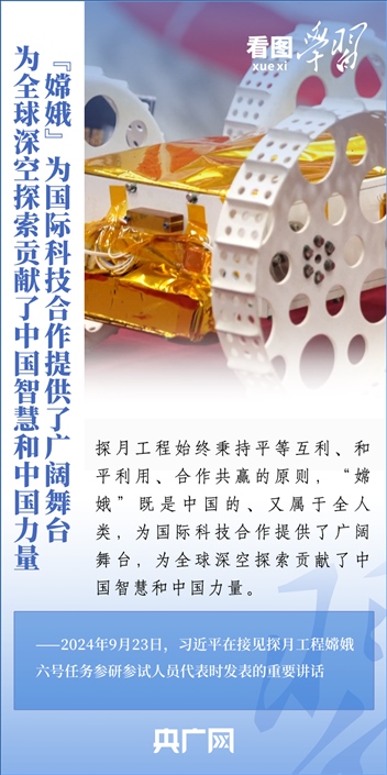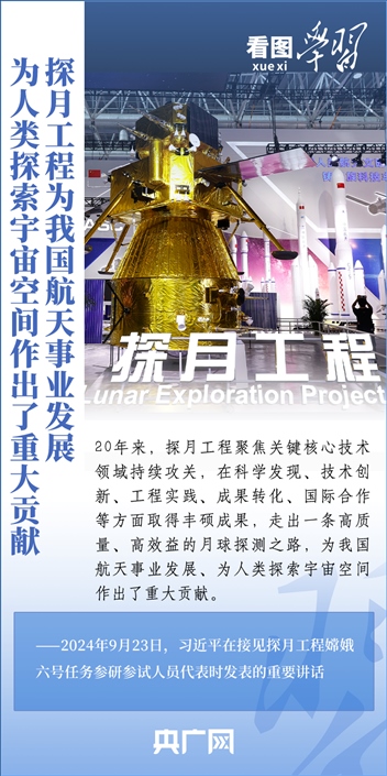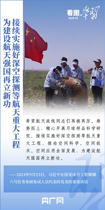 中國探月工程成果凝結(jié)著我國幾代航天人的智慧和心血。9月23日,習近平總書記接見探月工程嫦娥六號任務(wù)參研參試人員代表并發(fā)表重要講話??倳浉叨瓤隙ㄦ隙鹆柸蝿?wù)成功的重要意義,以及探月工程為我國航天事業(yè)發(fā)展、為人類探索宇宙空間作出的重大貢獻,勉勵航天戰(zhàn)線工作者再接再厲、乘勢而上,為建設(shè)航天強國再立新功。一起來學習!