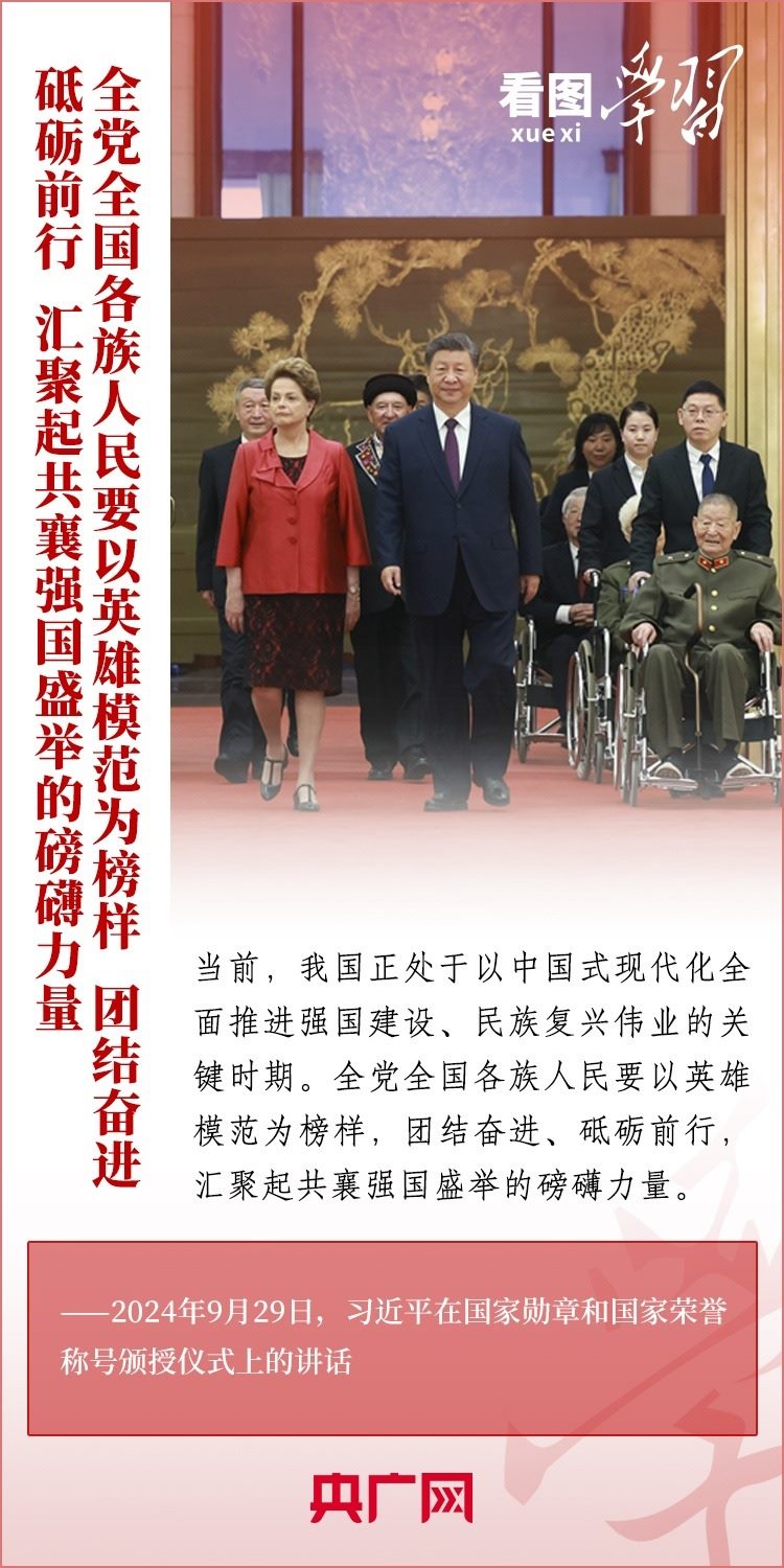 9月29日,中華人民共和國國家勛章和國家榮譽稱號頒授儀式在北京舉行,習(xí)近平總書記向國家勛章和國家榮譽稱號獲得者頒授勛章獎?wù)虏l(fā)表重要講話??倳洀娬{(diào),全黨全國各族人民要以英雄模范為榜樣,團結(jié)奮進、砥礪前行,匯聚起共襄強國盛舉的磅礴力量。一起來學(xué)習(xí)!