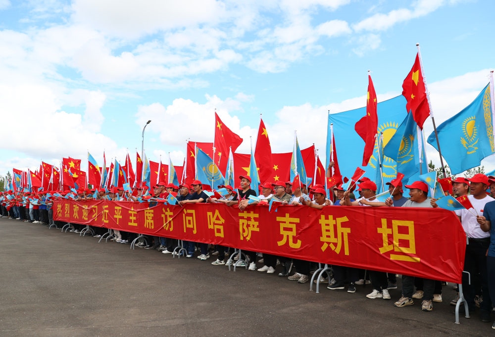 哈方在機(jī)場舉行隆重歡迎儀式,哈薩克斯坦少年兒童用中文演唱《歌唱祖國》。習(xí)近平乘車從機(jī)場赴下榻飯店途中,當(dāng)?shù)刂匈Y企業(yè)代表等候在道路兩旁,揮舞中哈兩國國旗,高舉“熱烈歡迎習(xí)近平主席訪問哈薩克斯坦”等紅色橫幅,熱烈歡迎習(xí)近平主席到訪。
