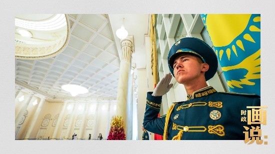 當(dāng)?shù)貢r間3日,國家主席習(xí)近平在阿斯塔納出席哈薩克斯坦總統(tǒng)托卡耶夫在總統(tǒng)府舉行的歡迎儀式。習(xí)近平主席乘車抵達時,托卡耶夫總統(tǒng)熱情迎接,以最高禮儀歡迎習(xí)近平主席對哈薩克斯坦進行國事訪問。