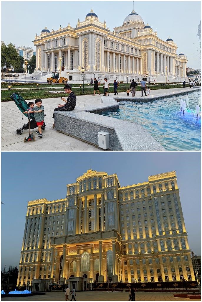 塔議會大樓、政府大樓坐落于杜尚別著名的魯達基大道,相隔數(shù)百米。議會大樓同總統(tǒng)府相望,政府大樓則俯瞰杜尚別另一條交通干道——索莫尼大道。兩座大樓融合歐亞古典柱廊結構、塔吉克民族特色雕刻、伊斯蘭文化風格的設計,外觀大氣、典雅莊重,同魯達基大道兩側的古樹、鮮花、噴泉相映成景。