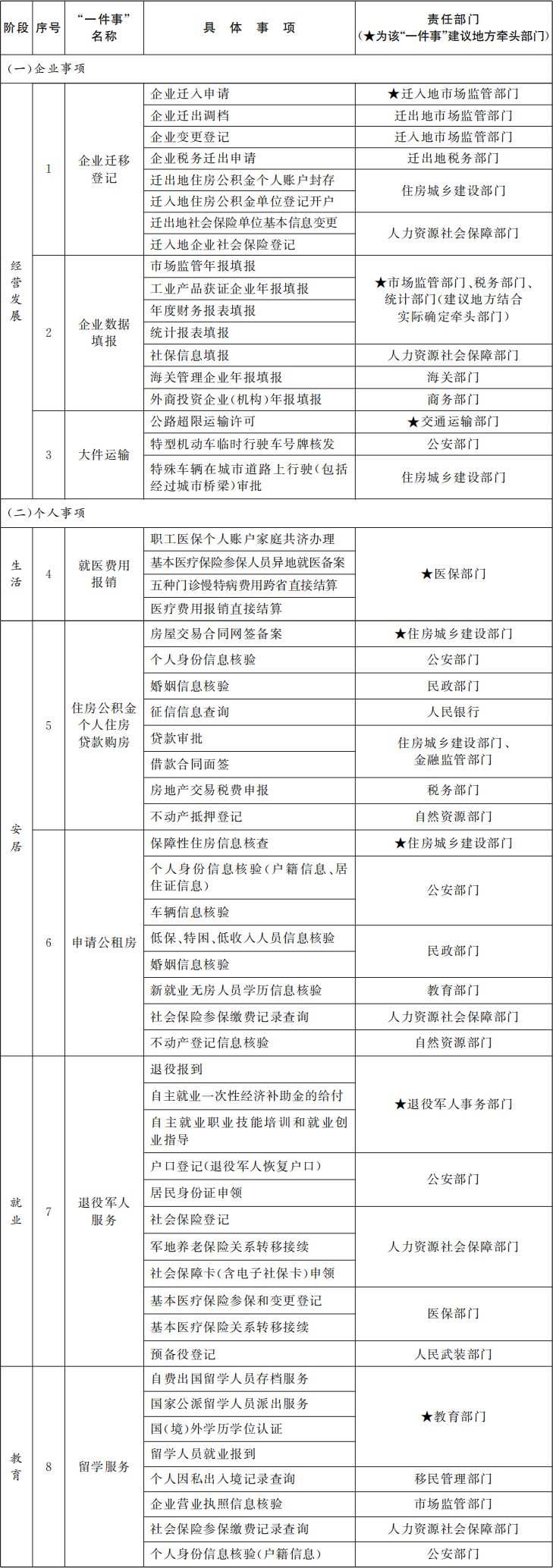 其中,屬于經(jīng)營主體辦事的有3項,包括企業(yè)遷移登記、企業(yè)數(shù)據(jù)填報、大件運輸?shù)取耙患隆薄儆趥€人辦事的有5項,包括就醫(yī)費用報銷、住房公積金個人住房貸款購房、申請公租房、退役軍人服務(wù)、留學服務(wù)等“一件事”。