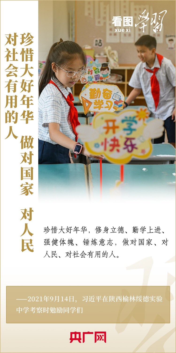 “少年兒童是祖國的未來?!币恢币詠恚?xí)近平總書記高度重視和關(guān)心青少年的健康成長。每每走到校園和學(xué)生們中間,總書記總會與他們談學(xué)習(xí)、談理想、談成長,鼓勵他們努力為自己贏得人生出彩的機(jī)會,做對國家、對人民、對社會有用的人。又是一年開學(xué)季,讓我們一起重溫總書記對莘莘學(xué)子的殷切期望。一起來學(xué)習(xí)!