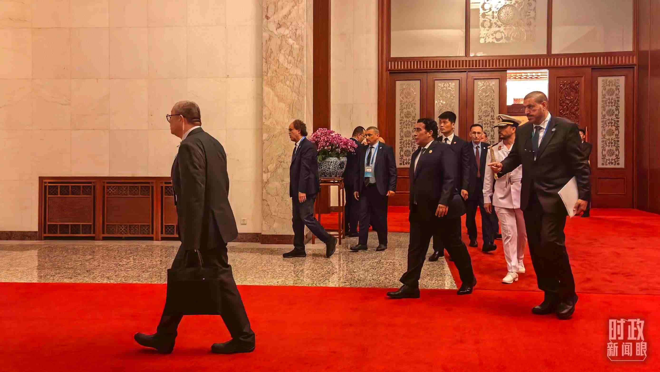 △非洲國(guó)家領(lǐng)導(dǎo)人步入人民大會(huì)堂。(總臺(tái)央視記者趙怡彬拍攝)