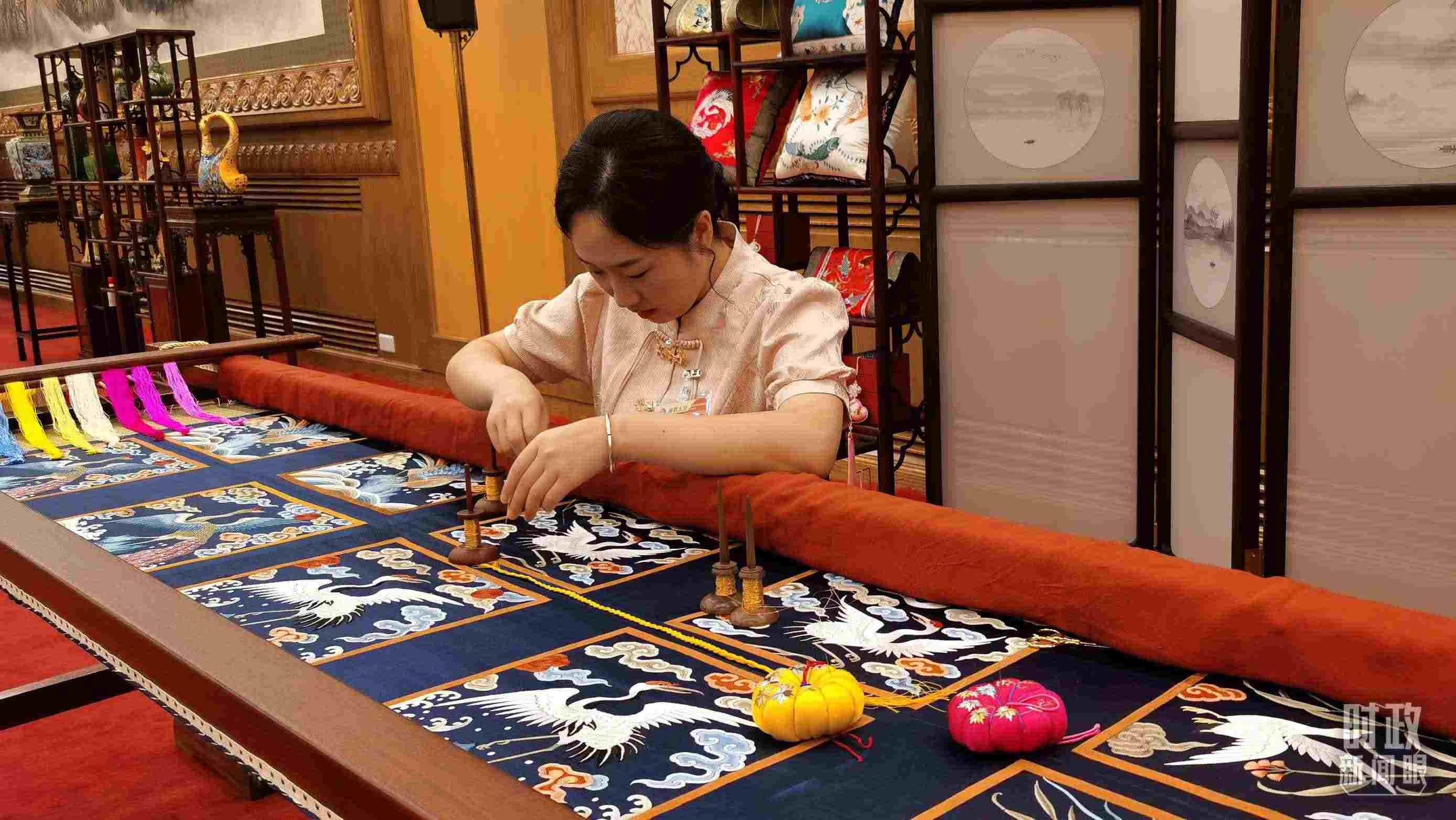 △外賓休息室內(nèi)的非遺展示。(總臺(tái)央視記者王曉東、郭鴻拍攝)