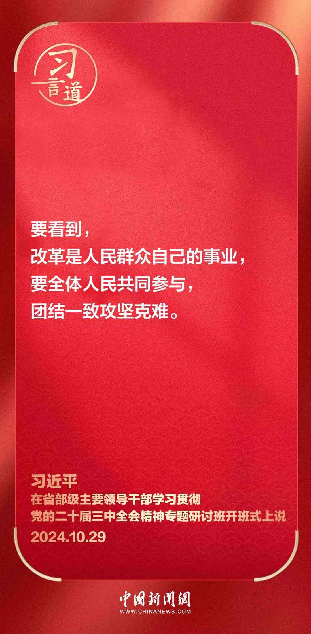 10月29日,省部級(jí)主要領(lǐng)導(dǎo)干部學(xué)習(xí)貫徹黨的二十屆三中全會(huì)精神專題研討班開班式上,習(xí)近平總書記的論述發(fā)人深思。