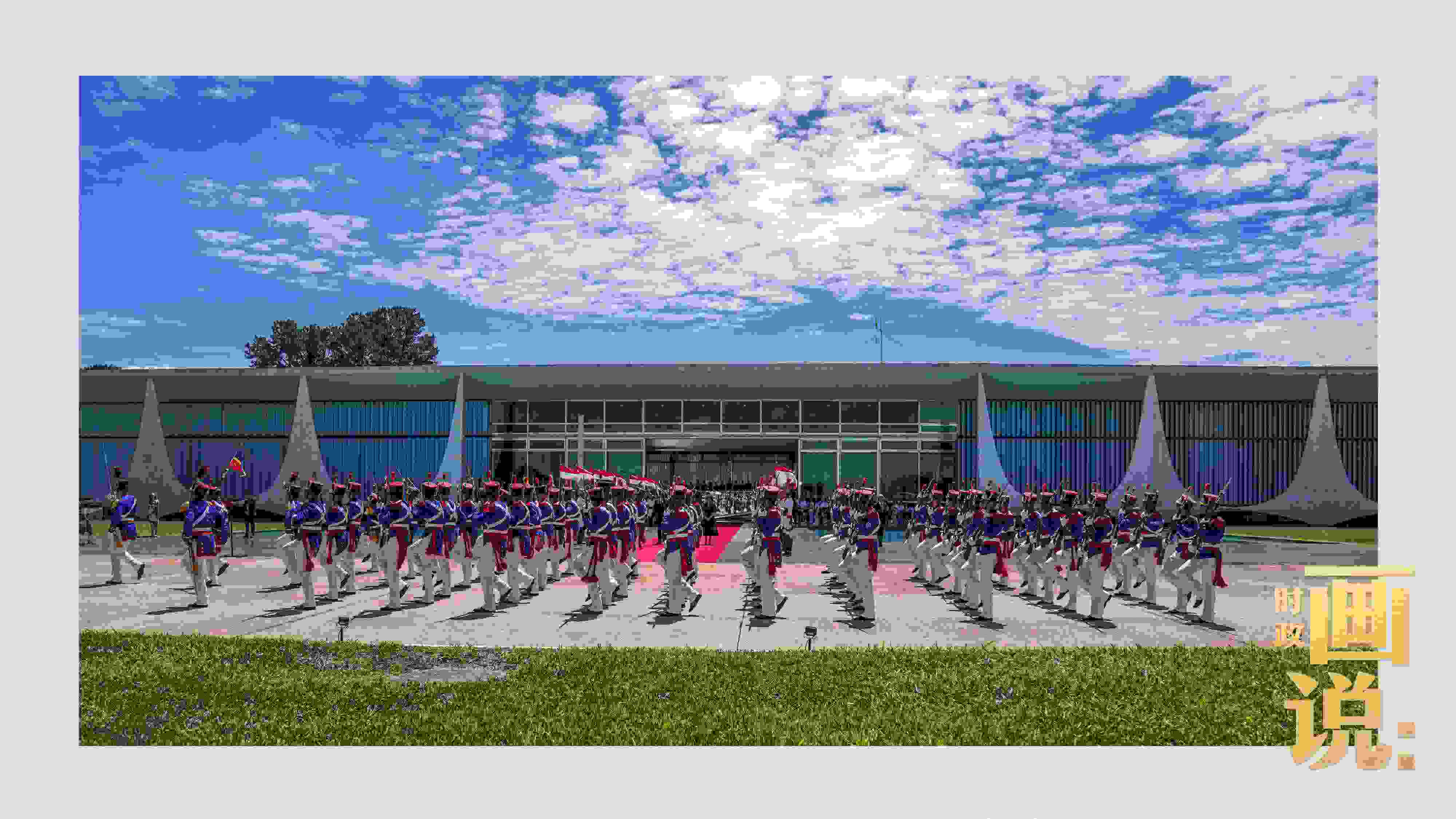 騎兵護(hù)衛(wèi)習(xí)近平主席專車抵達(dá)儀式現(xiàn)場(chǎng),巴西藝術(shù)家用中文深情唱響中國(guó)經(jīng)典民歌《我的祖國(guó)》,現(xiàn)場(chǎng)氣氛隆重?zé)崃摇?/p>