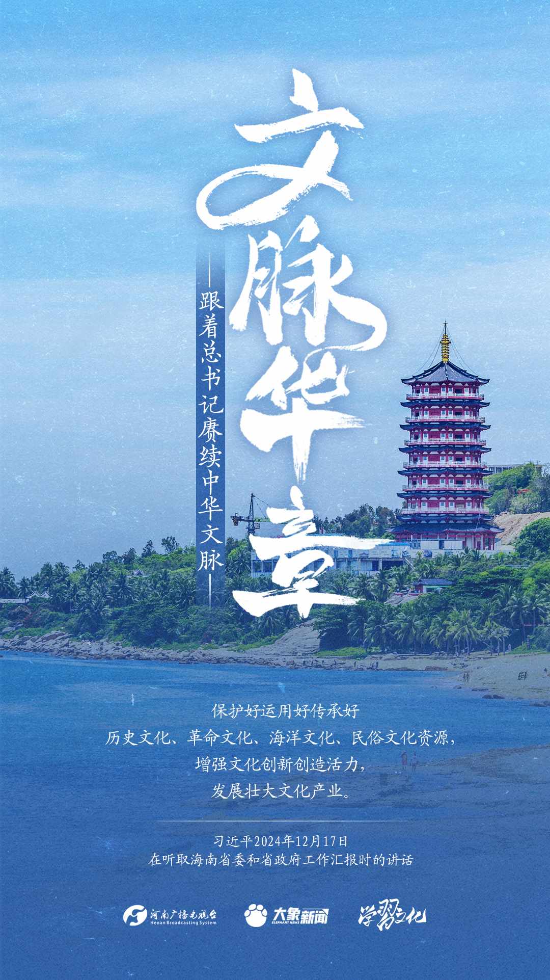 習(xí)近平總書記高度重視中華優(yōu)秀傳統(tǒng)文化的繼承和弘揚。2024年,總書記一如既往,念茲在茲。在赴地方考察、主持召開重要會議等眾多場合,多次對傳承發(fā)展中華優(yōu)秀傳統(tǒng)文化作出重要講話重要指示。大象新聞邀您一起,跟著總書記賡續(xù)中華文脈,推動中華優(yōu)秀傳統(tǒng)文化創(chuàng)造性轉(zhuǎn)化和創(chuàng)新性發(fā)展,在新的起點上繼續(xù)推動文化繁榮、建設(shè)文化強國、建設(shè)中華民族現(xiàn)代文明。