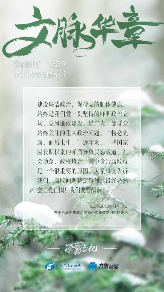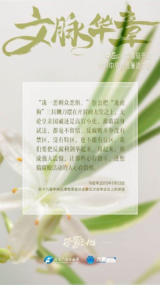 中華優(yōu)秀傳統(tǒng)文化蘊含著豐富的廉潔文化,習近平總書記曾指出:沒有中華優(yōu)秀傳統(tǒng)文化、革命文化、社會主義先進文化的底蘊和滋養(yǎng),信仰信念就難以深沉而執(zhí)著。總書記常常引經(jīng)據(jù)典,教育引導廣大黨員干部正心修身,涵養(yǎng)文化,守住為政之本。大象新聞分五期為您梳理,我們一起跟著總書記學習中華傳統(tǒng)廉潔文化。今天推出第五期。
