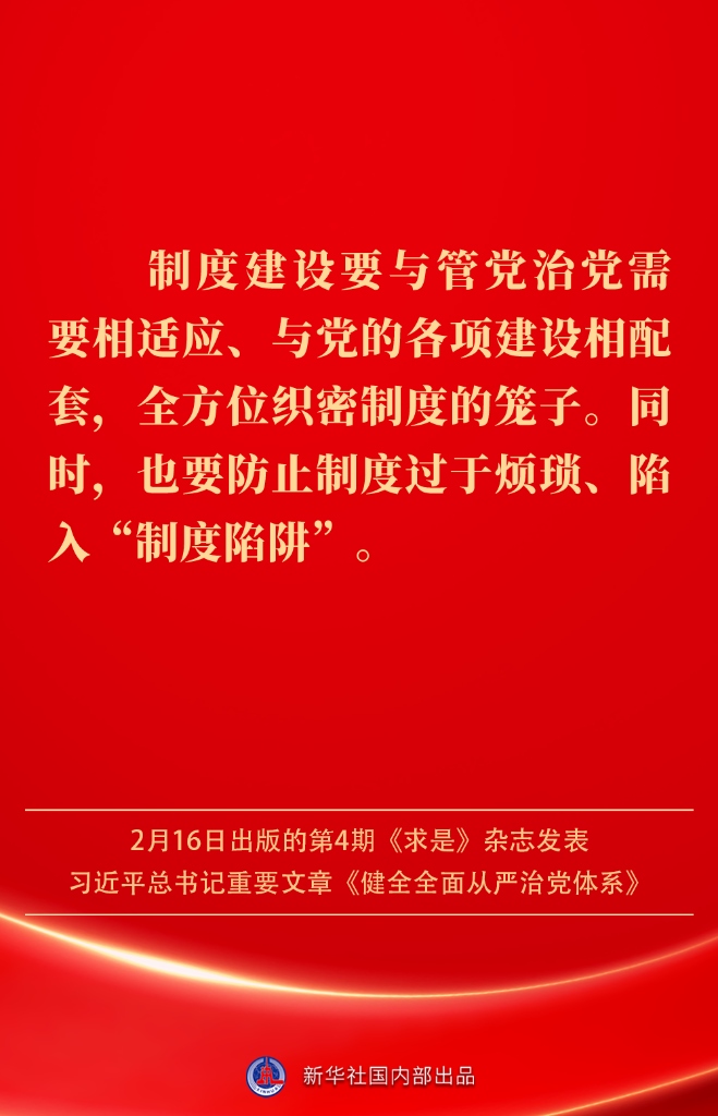 2月16日出版的第4期《求是》雜志發(fā)表習(xí)近平總書記重要文章《健全全面從嚴(yán)治黨體系》。如何進(jìn)一步健全要素齊全、功能完備、科學(xué)規(guī)范、運(yùn)行高效的全面從嚴(yán)治黨體系?習(xí)近平總書記闡明要旨——