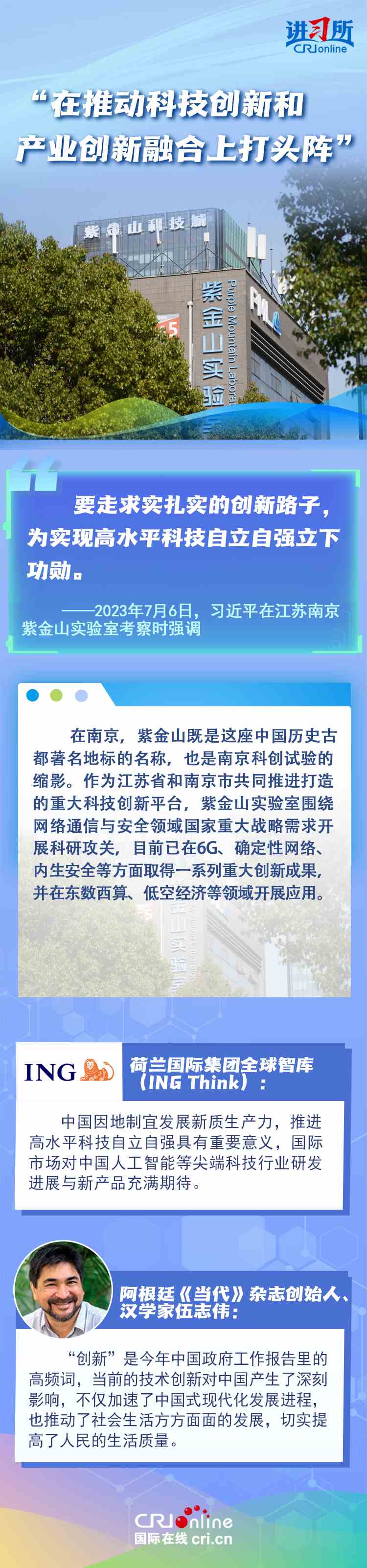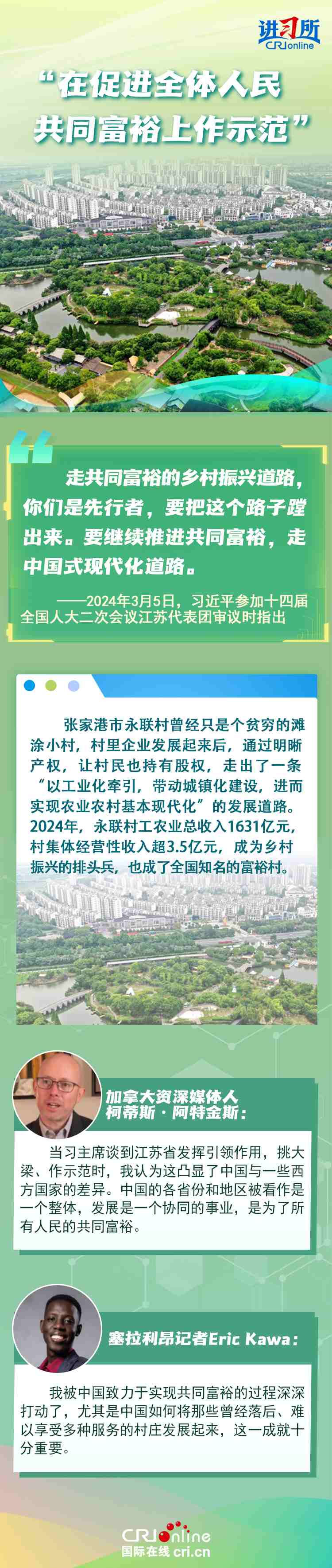 從紫金山實驗室的6G突破到蘇州工業(yè)園區(qū)的開放升級,從長三角協(xié)同創(chuàng)新到永聯(lián)村的共富實踐,江蘇在中國式現(xiàn)代化新實踐上已成為世界觀察中國高質(zhì)量發(fā)展的重要窗口。國際人士認為,中國因地制宜的創(chuàng)新發(fā)展之路有力推動了國家現(xiàn)代化進程與民生福祉提升。