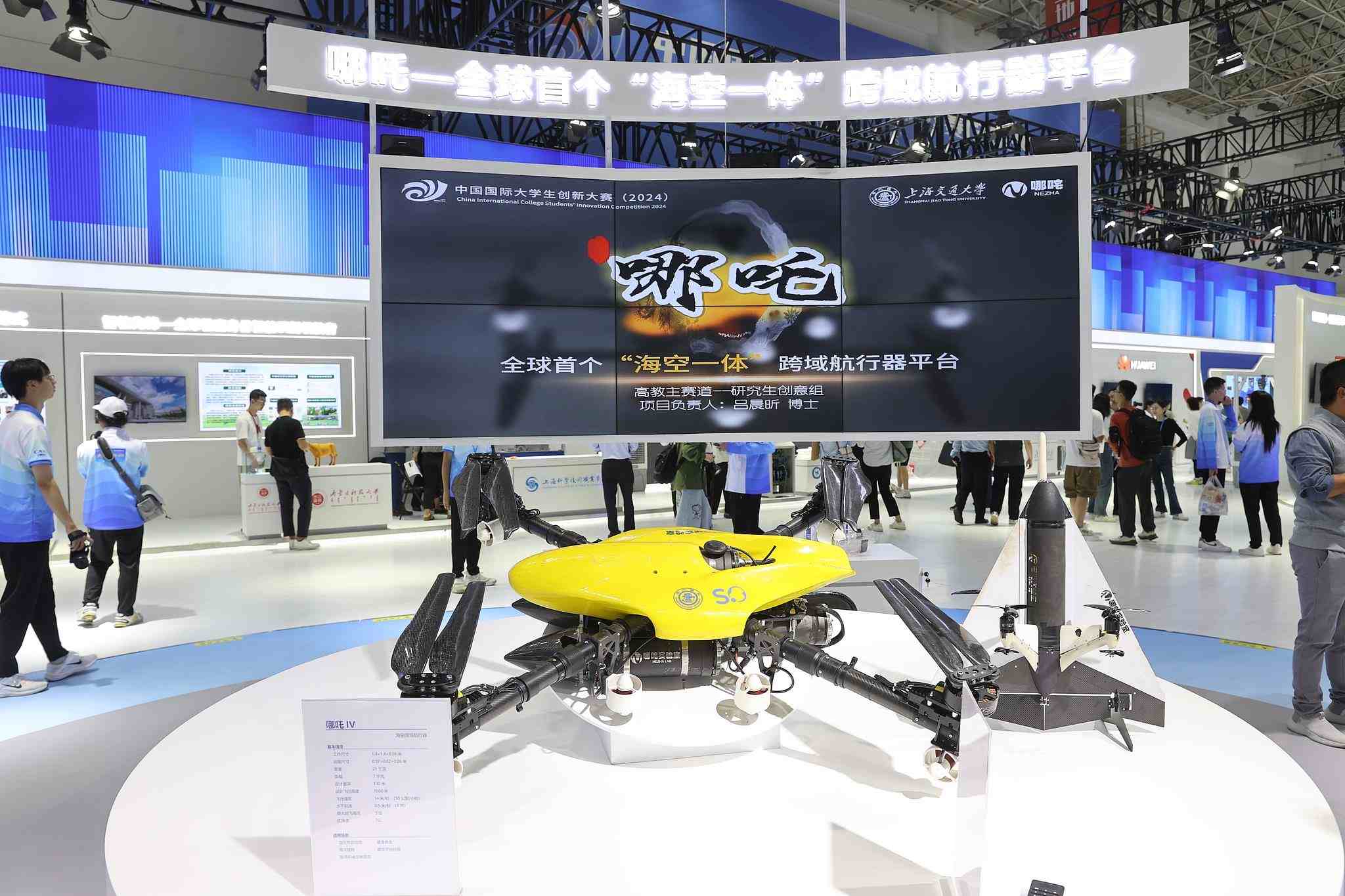 △2024年10月12日至15日,中國國際大學(xué)生創(chuàng)新大賽總決賽及同期活動在上海舉行。來自上海交通大學(xué)的“哪吒——全球首個‘??找惑w’跨域航行器平臺”項(xiàng)目奪得冠軍。