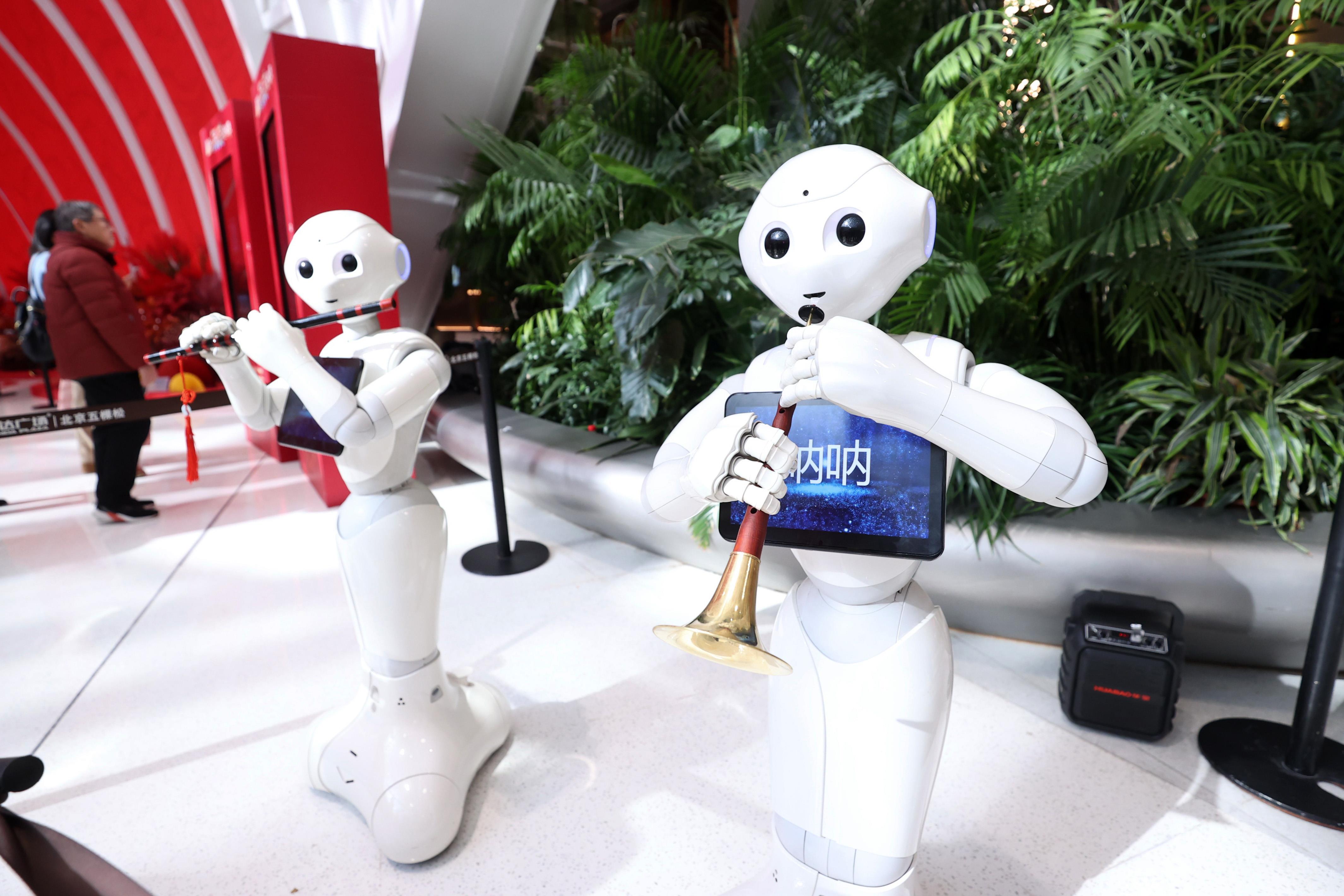△2025年2月2日,機(jī)器人在北京海淀新春科技廟會上表演。