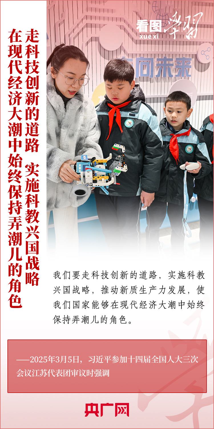 “我們要走科技創(chuàng)新的道路,實(shí)施科教興國戰(zhàn)略,推動(dòng)新質(zhì)生產(chǎn)力發(fā)展,使我們國家能夠在現(xiàn)代經(jīng)濟(jì)大潮中始終保持弄潮兒的角色?!苯衲耆珖鴥蓵?huì)期間,習(xí)近平總書記就科技和產(chǎn)業(yè)創(chuàng)新、科技人才培養(yǎng)等作出深刻闡釋,強(qiáng)調(diào)要“堅(jiān)持教育、科技、人才一起抓”,為科技創(chuàng)新指明方向。