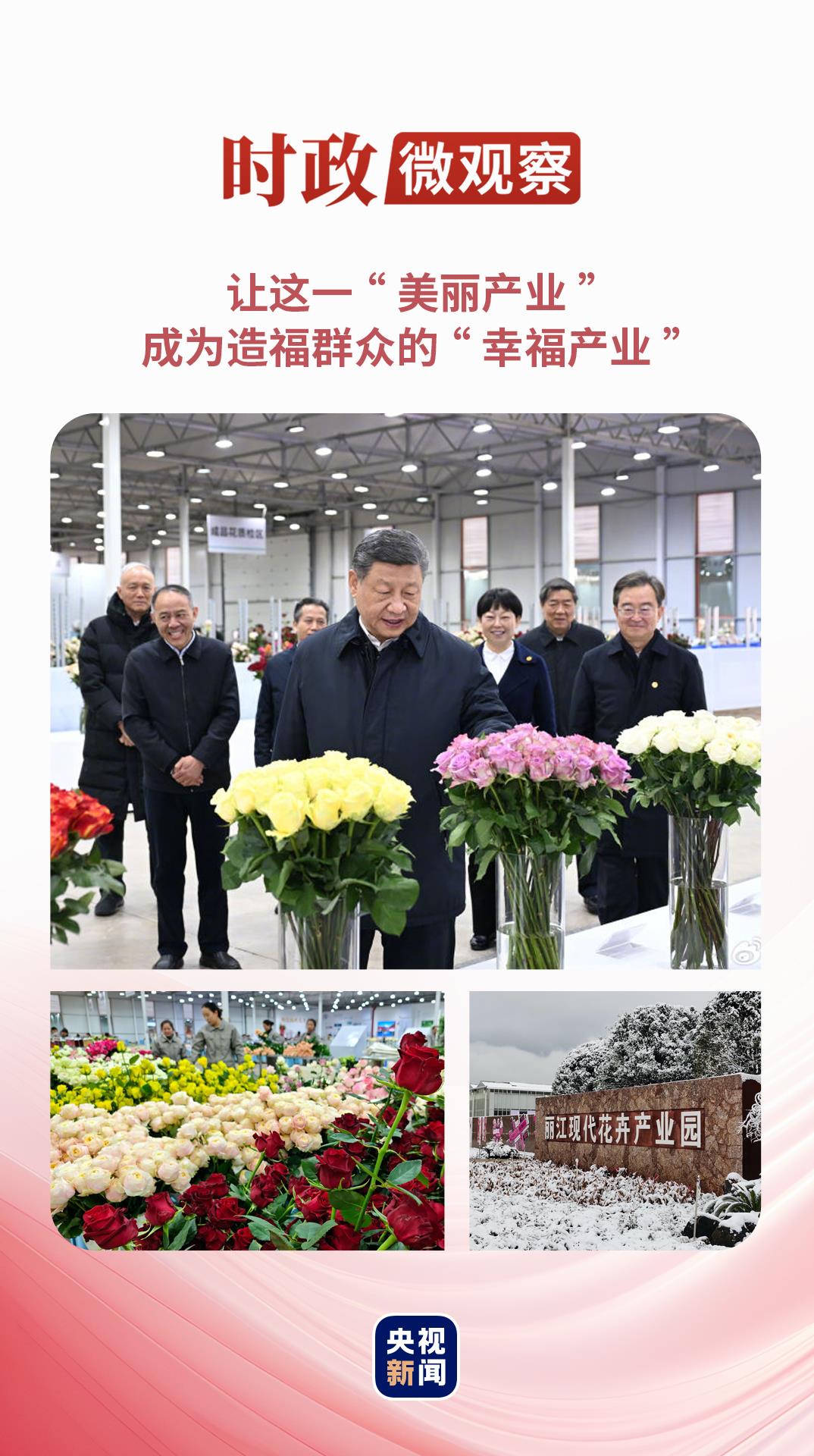 3月19日下午,習(xí)近平總書記來到這里考察調(diào)研。當(dāng)?shù)卮迕窀嬖V總書記,在這里工作,一個月收入4000多元,旺季可達(dá)7000多元,“種花這個工作干得特別開心”??倳浉吲d地說:“你們這個事業(yè)搞得很興旺,符合現(xiàn)代農(nóng)業(yè)發(fā)展方向。祝你們的生活像花兒一樣美!”