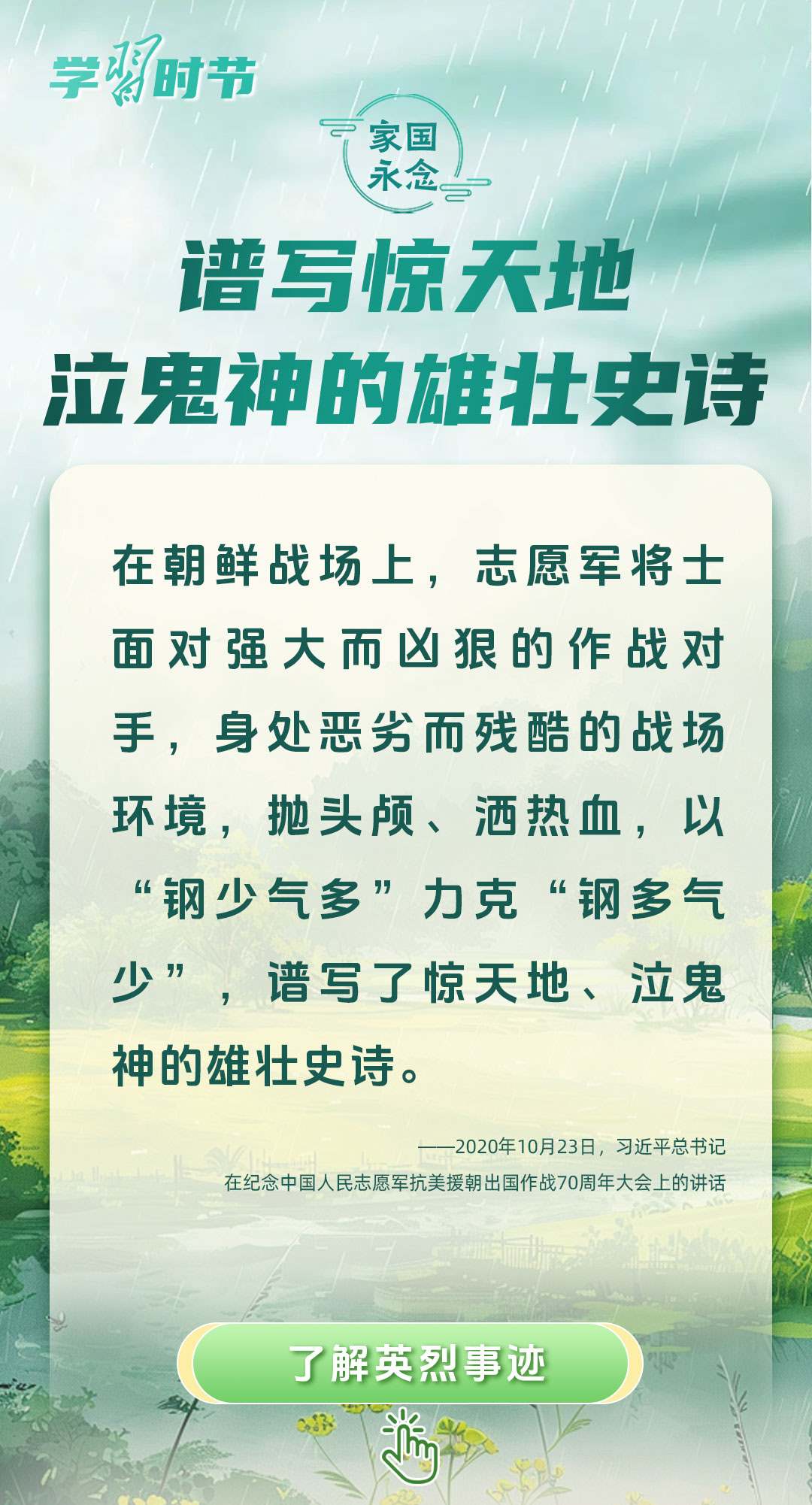 今年是中國人民抗日戰(zhàn)爭暨世界反法西斯戰(zhàn)爭勝利80周年、中國人民志愿軍抗美援朝出國作戰(zhàn)75周年。習近平總書記曾說:“對一切為國家、為民族、為和平付出寶貴生命的人們,不管時代怎樣變化,我們都要永遠銘記他們的犧牲和奉獻。”今天我們所擁有的一切,無不凝結(jié)著英雄、英烈們的奉獻付出乃至巨大犧牲。