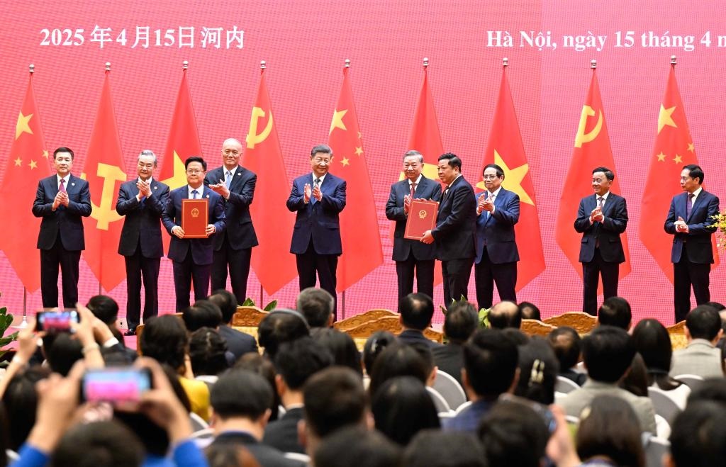 會談后,兩黨總書記共同見證中越雙方簽署的45份雙邊合作文本展示,涵蓋互聯(lián)互通、人工智能、海關檢驗檢疫、農產品貿易、文化和體育、民生、人力資源開發(fā)、媒體等領域。