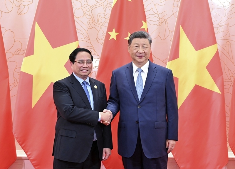 8月31日下午,國家主席習近平在天津迎賓館會見來華出席2025年上海合作組織峰會的越南總理范明政。新華社記者 殷博古 攝