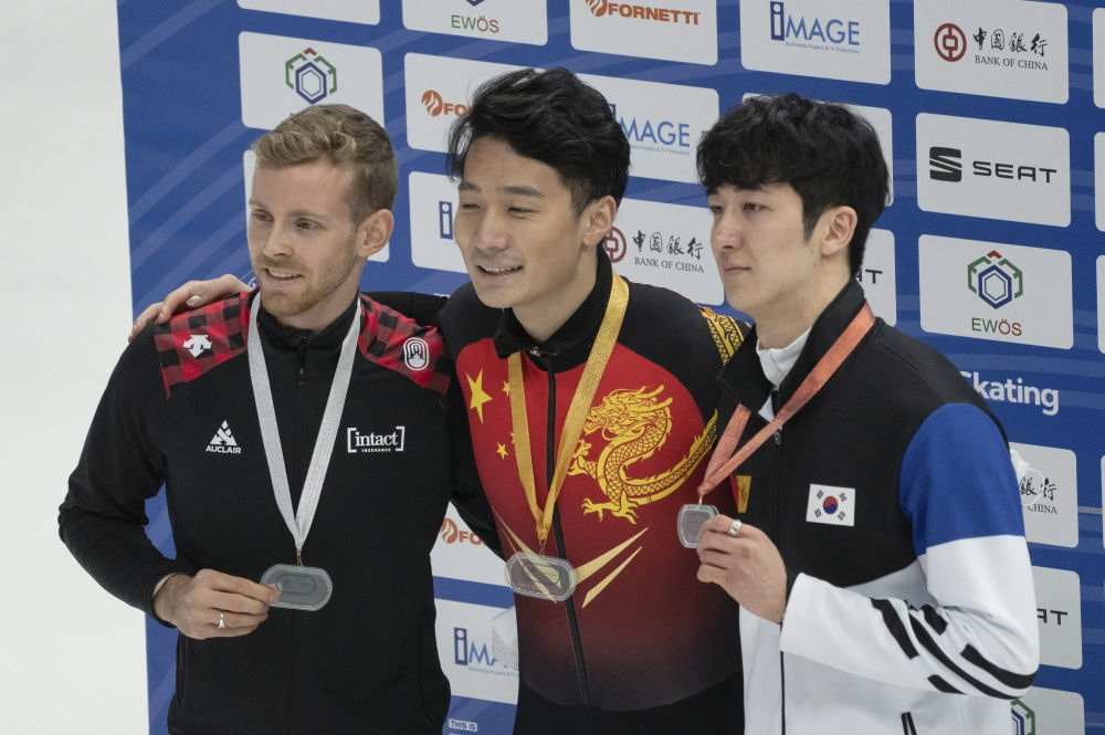 溫哥華冬奧會(huì)冠軍張會(huì)展示北京2022年冬奧會(huì)火炬?!〗x 攝