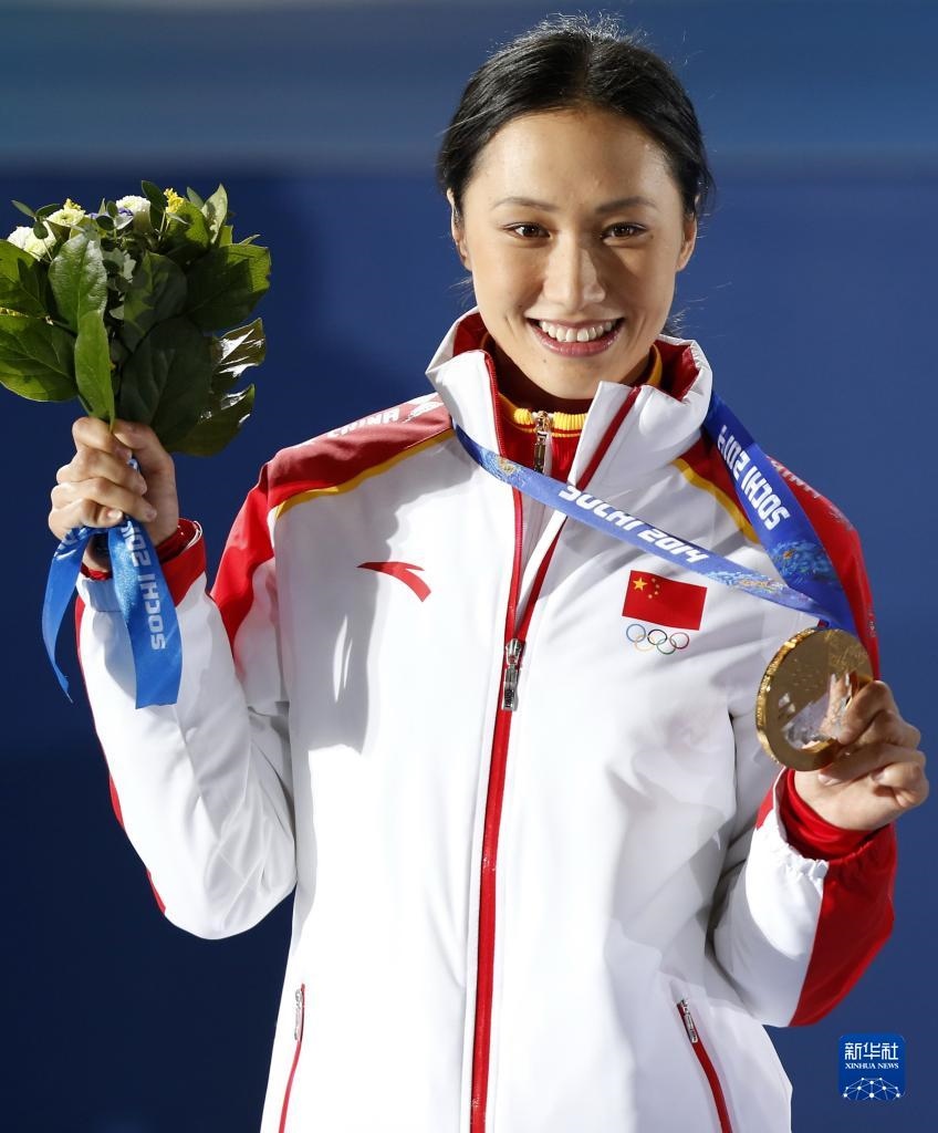 2014年2月14日,張虹在俄羅斯索契冬奧會速度滑冰女子1000米比賽頒獎儀式上。新華社記者王麗莉攝