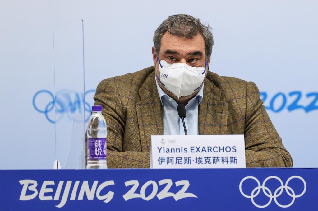 2月14日,奧林匹克轉(zhuǎn)播服務(wù)公司首席執(zhí)行官伊阿尼斯·??怂_科斯在新聞發(fā)布會上。新華社記者楊磊攝