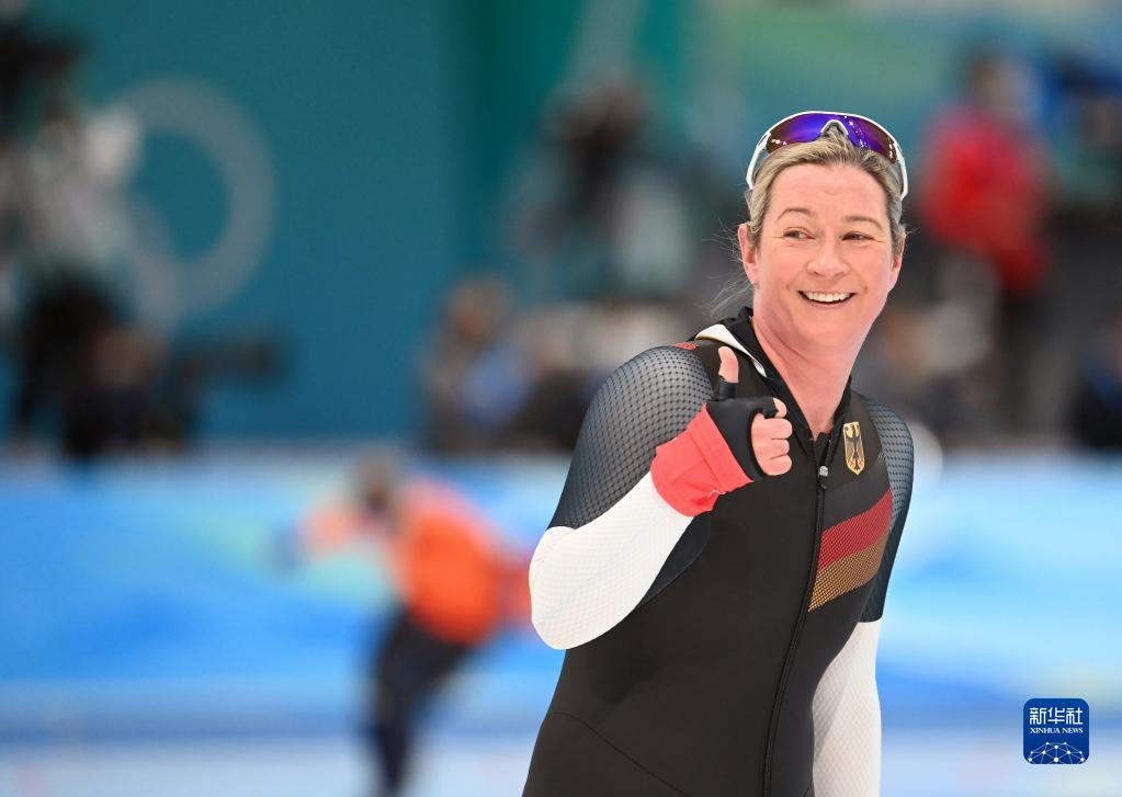 2月5日,德國隊(duì)選手克勞迪婭·佩希施泰因在速度滑冰女子3000米決賽后。新華社記者武巍攝