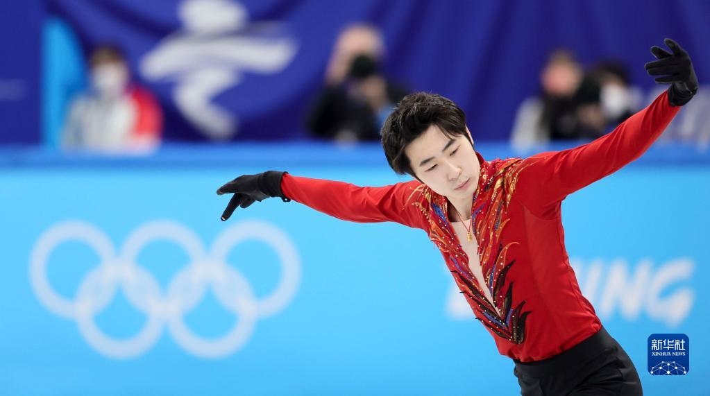2月10日,中國隊(duì)選手金博洋在花樣滑冰男子單人滑自由滑比賽中。新華社記者蘭紅光攝