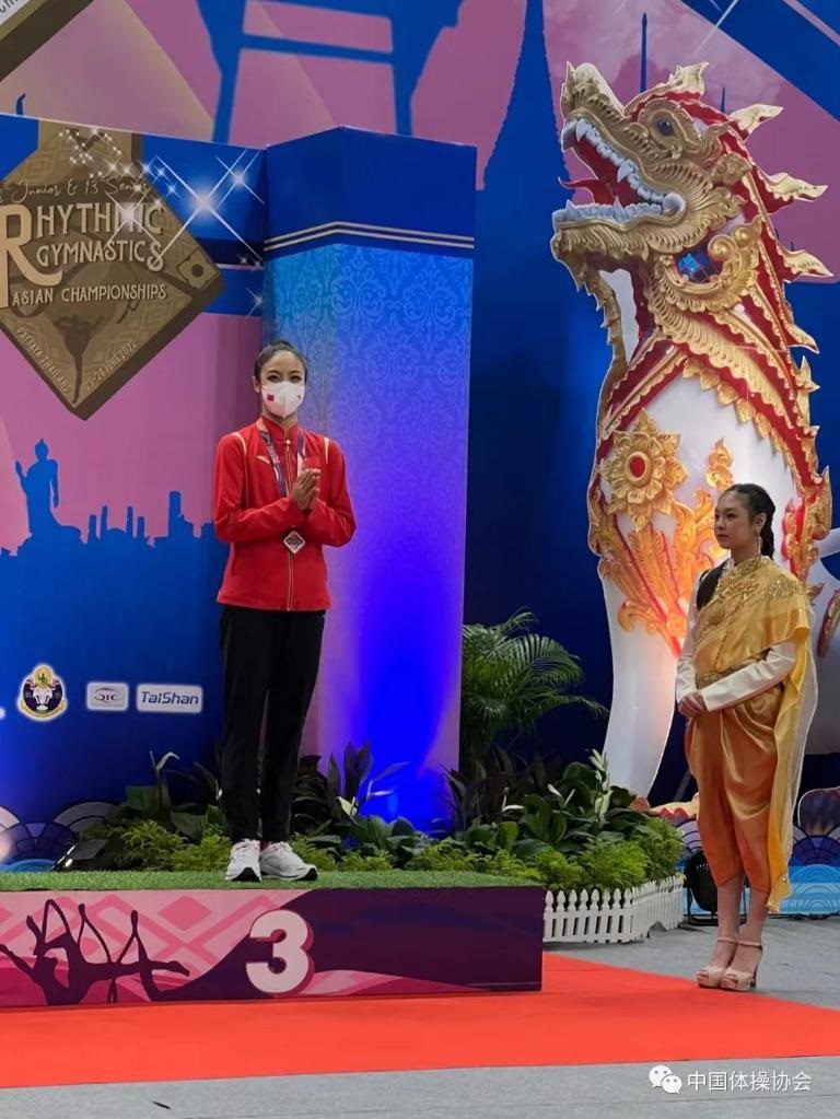 在最后一個比賽日進行的單項決賽中,趙雅婷延續(xù)此前的好狀態(tài),在圈操決賽中拿到31.55分,獲得季軍;在帶操決賽中拿到29.00分,再收獲一枚銅牌;以29.70分獲得棒操第四名。對于自己本次亞錦賽之旅,趙雅婷表示總體比較滿意,通過與對手同場競技,更直觀地看到了自己的不足,自己回去之后還要在難度上下功夫,提高難度完成的清晰度。